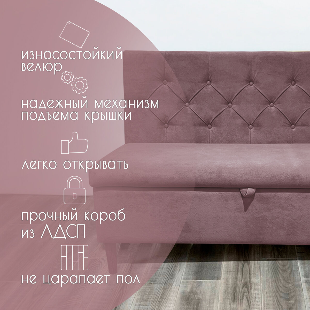 Купить Диван на кухню "Рико" с ящиком для хранения/Велюр/Розовый 140x59x85