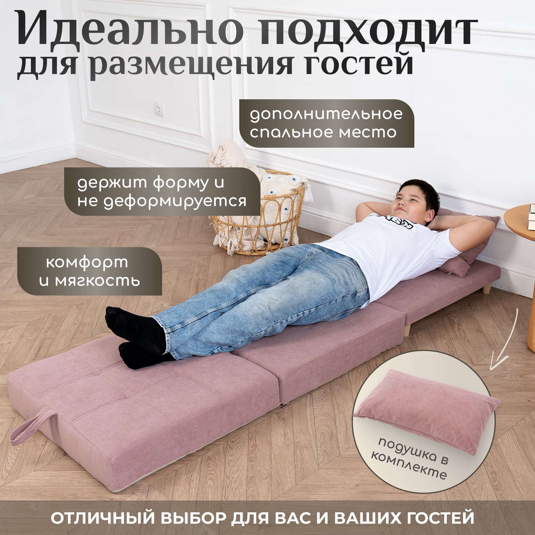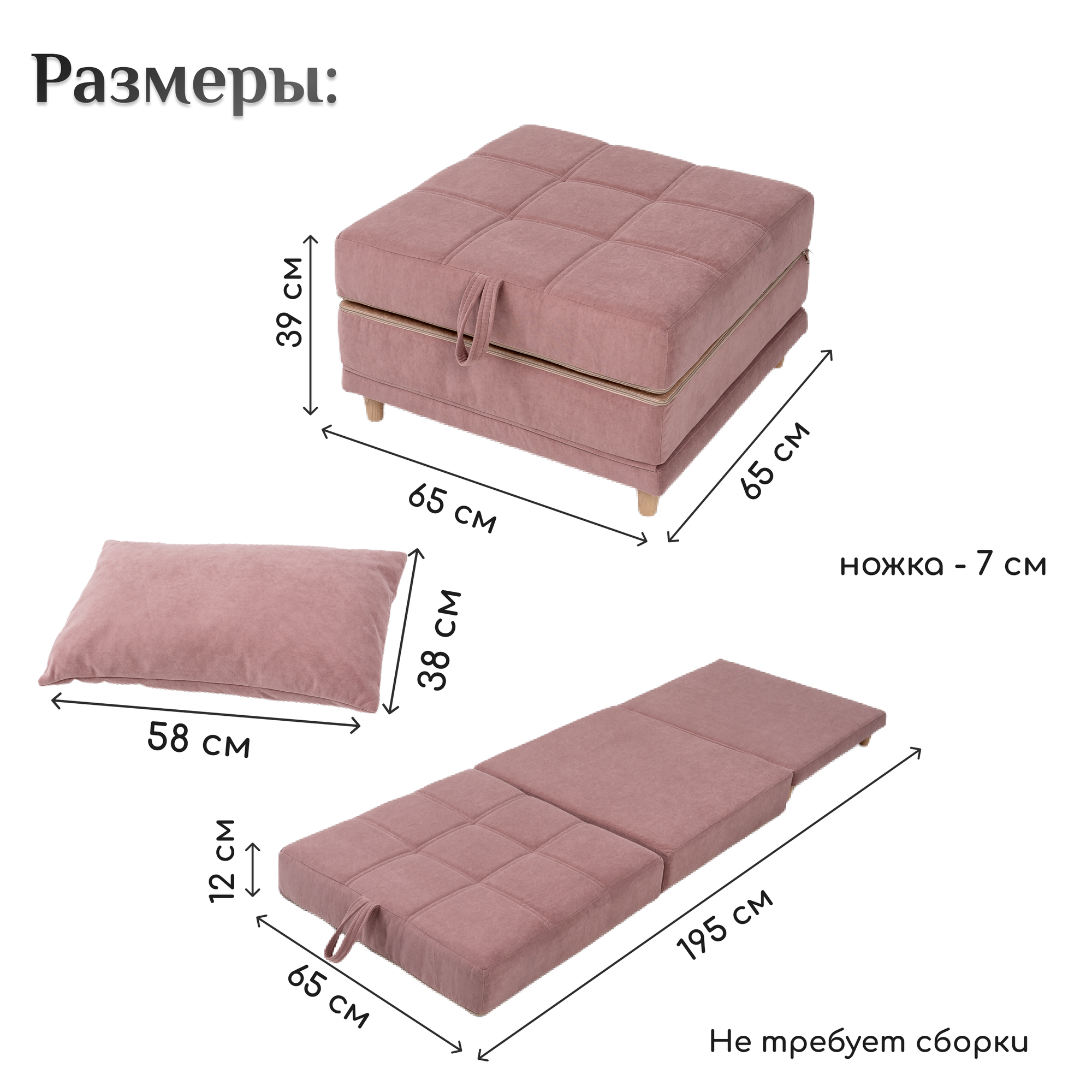 Купить Пуф трансформер кровать раскладушка розовый велюр с подушкой
