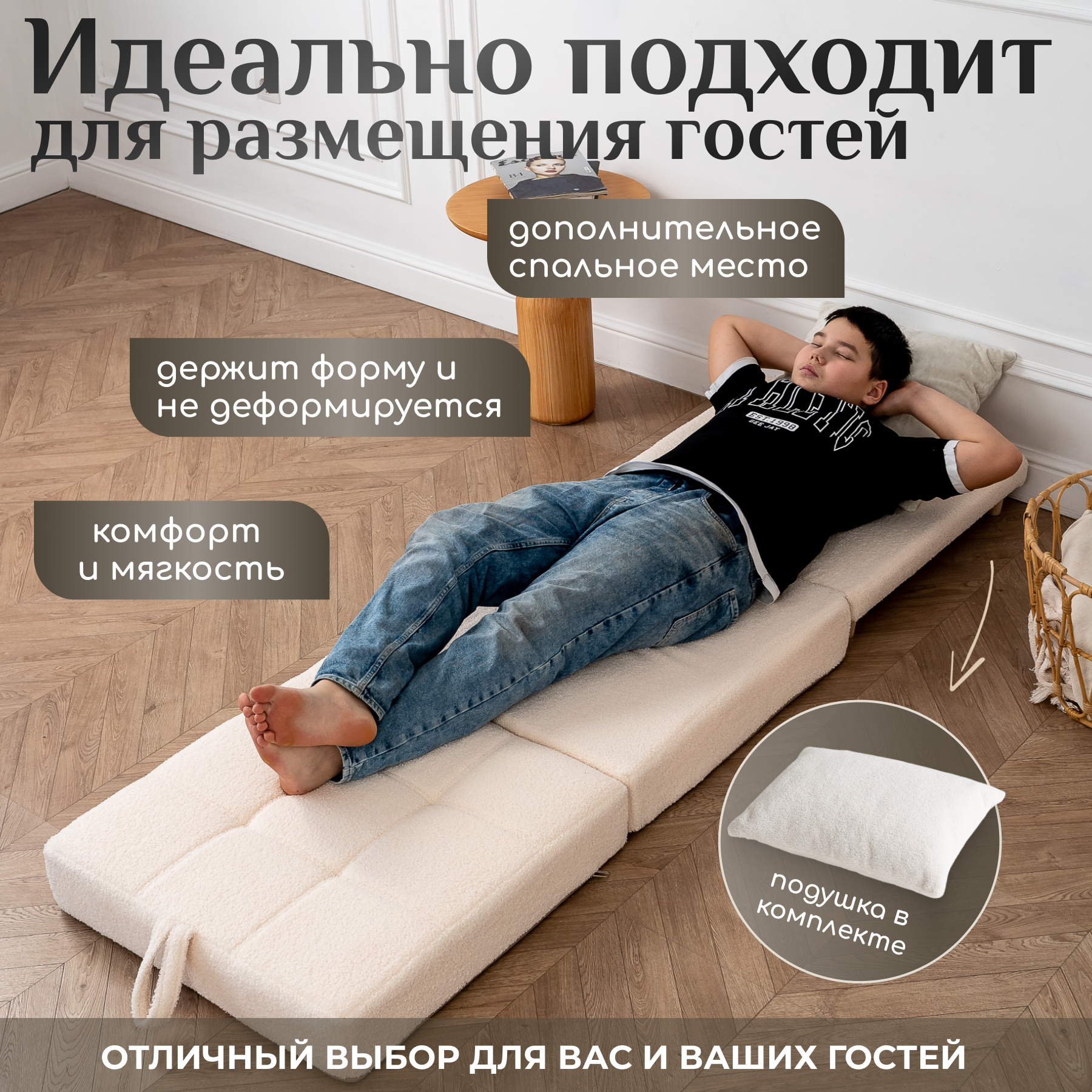 Ниже Вы можете прочитать отзывы на Пуф трансформер кровать раскладушка молочный букле с подушкой, ознакомится с подробными характеристиками, посмотреть интересные обзоры и фотографии на Пуф трансформер кровать раскладушка молочный букле с подушкой.