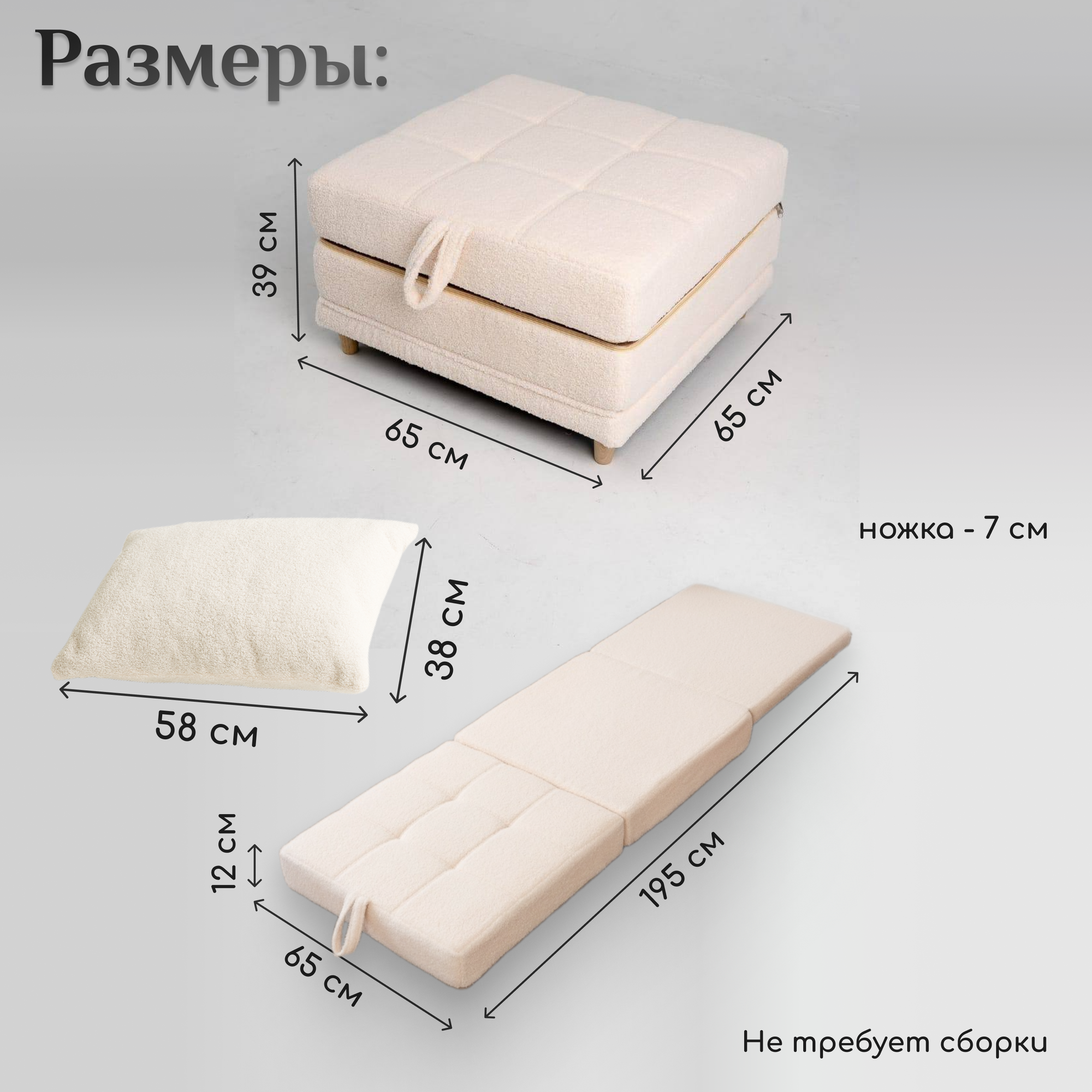 Пуф трансформер кровать раскладушка молочный букле