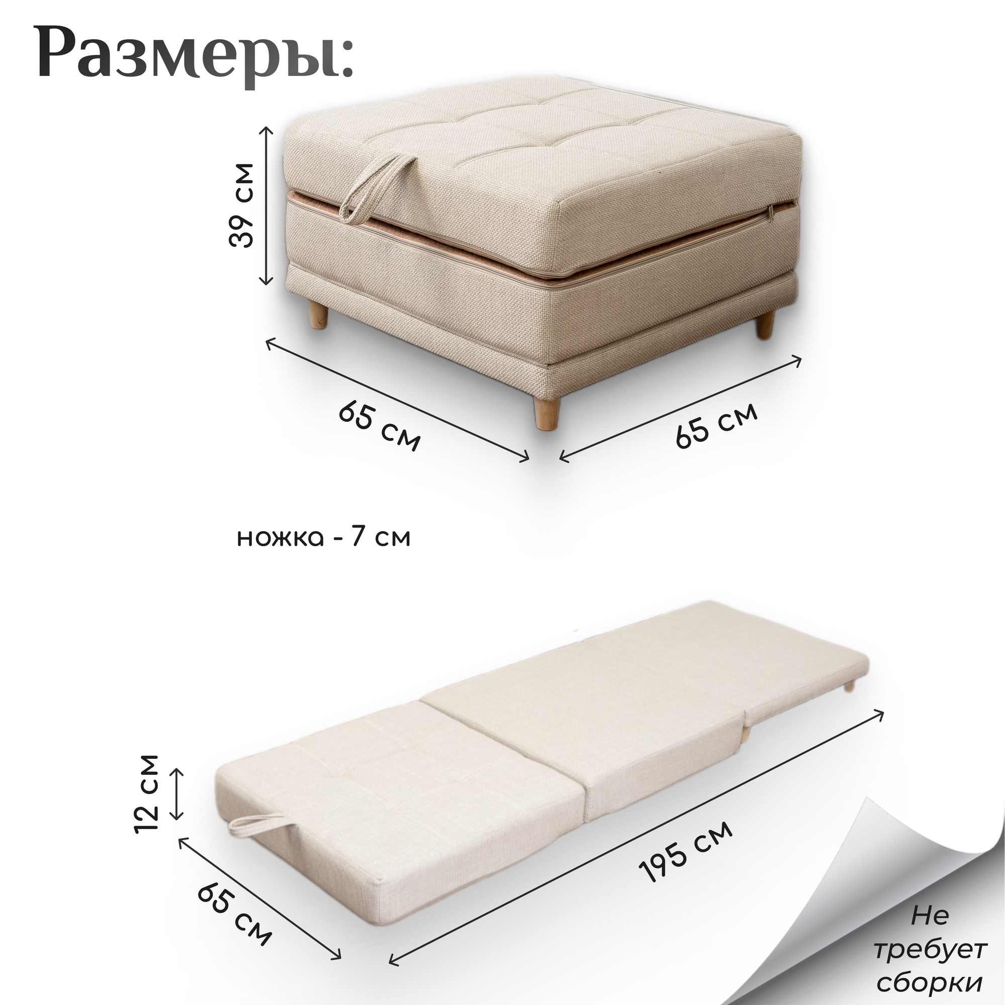| Дополнительная информация | Комплектация: 1 пуф трансформер, 5 ножек из бука |
