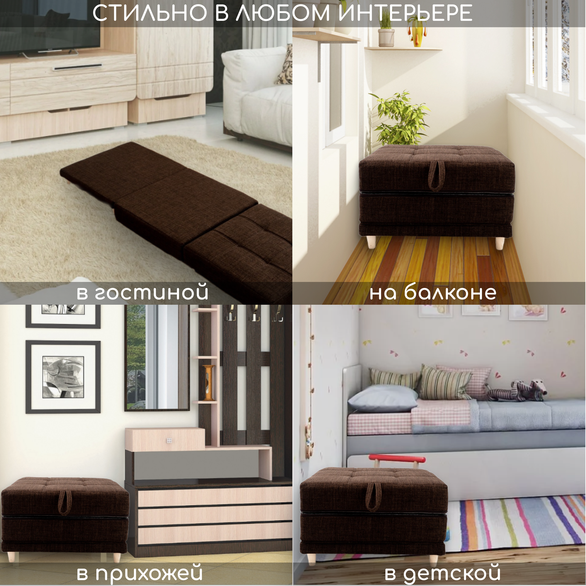 Купить Пуф трансформер кровать раскладушка темно-коричневая рогожка