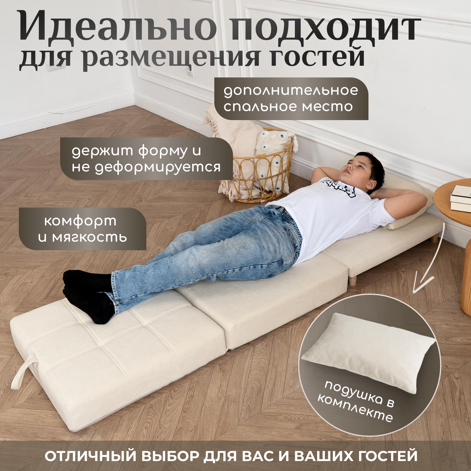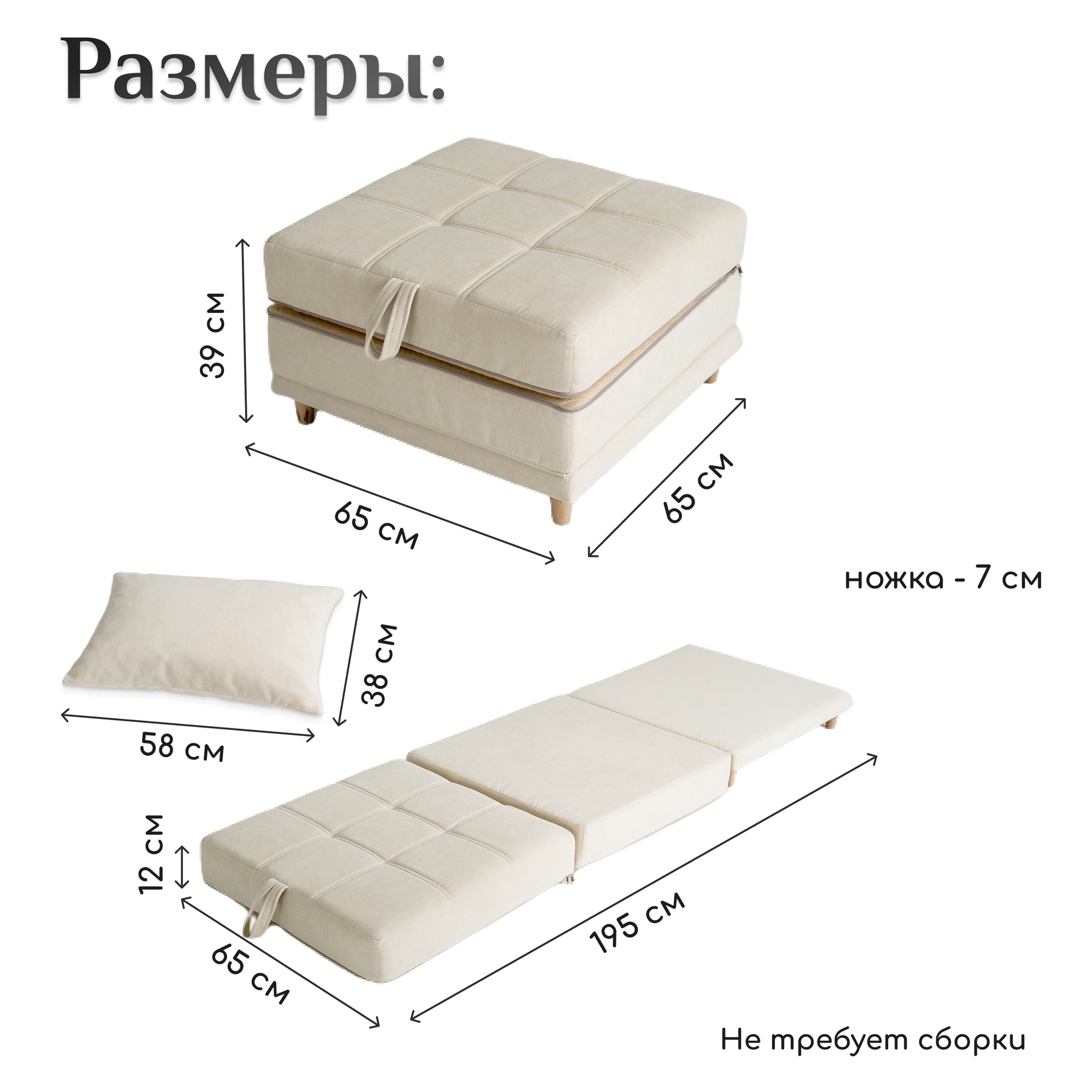 Пуф трансформер кровать раскладушка молочный букле с подушкой