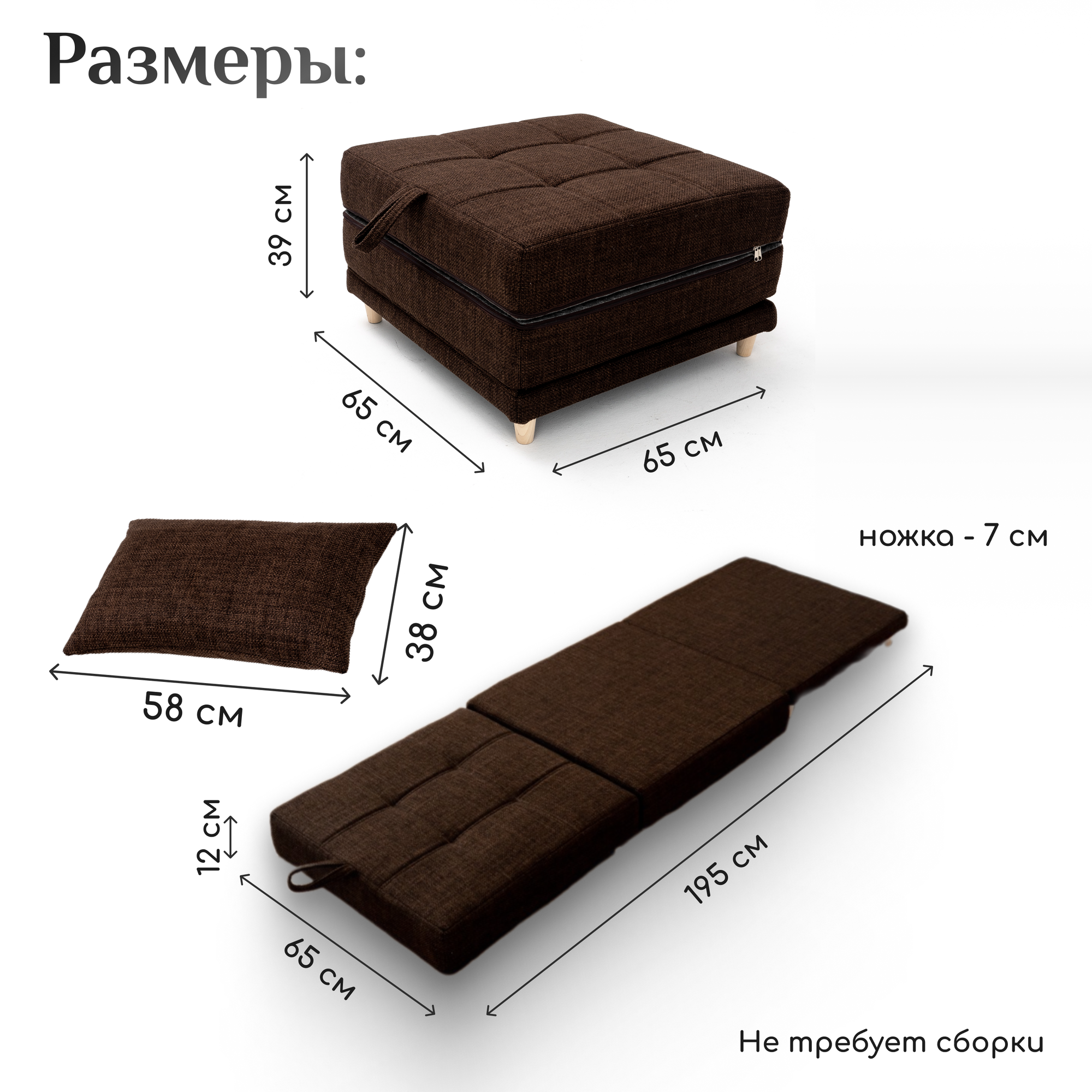 Купить Пуф трансформер кровать раскладушка темно-коричневая рогожка с подушкой