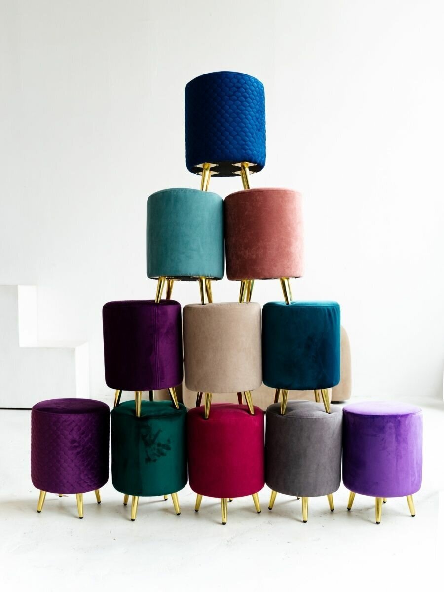 Пуф круглый Элика / пуфик в прихожую, в спальню / велюр / темно-синий