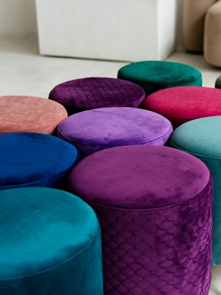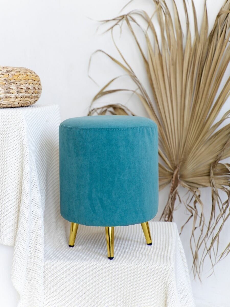 Пуф круглый Элика / пуфик в прихожую, в спальню / велюр / темно-синий