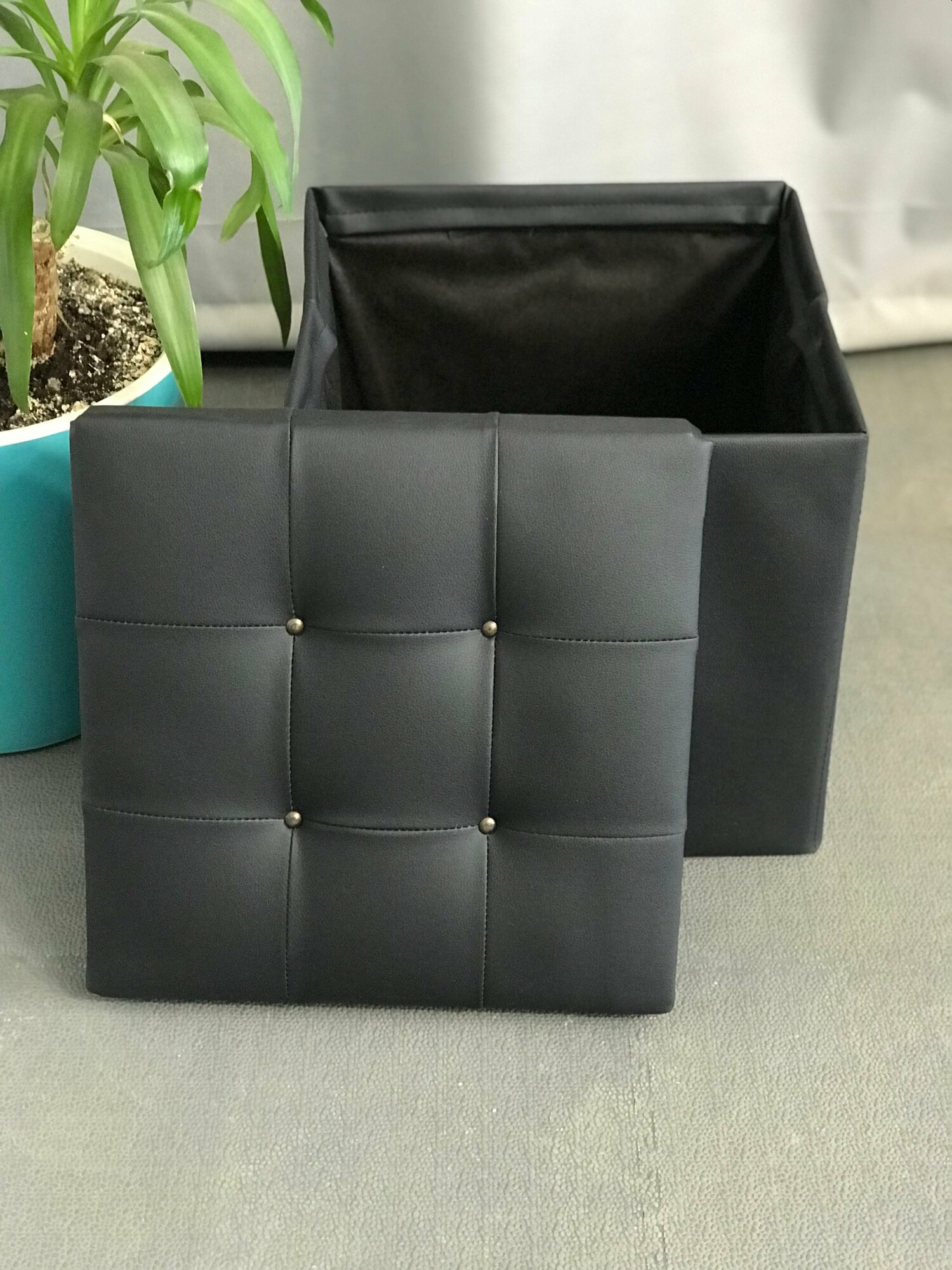 Пуф складной с ящиком для хранения "Шахматы" черно-белый