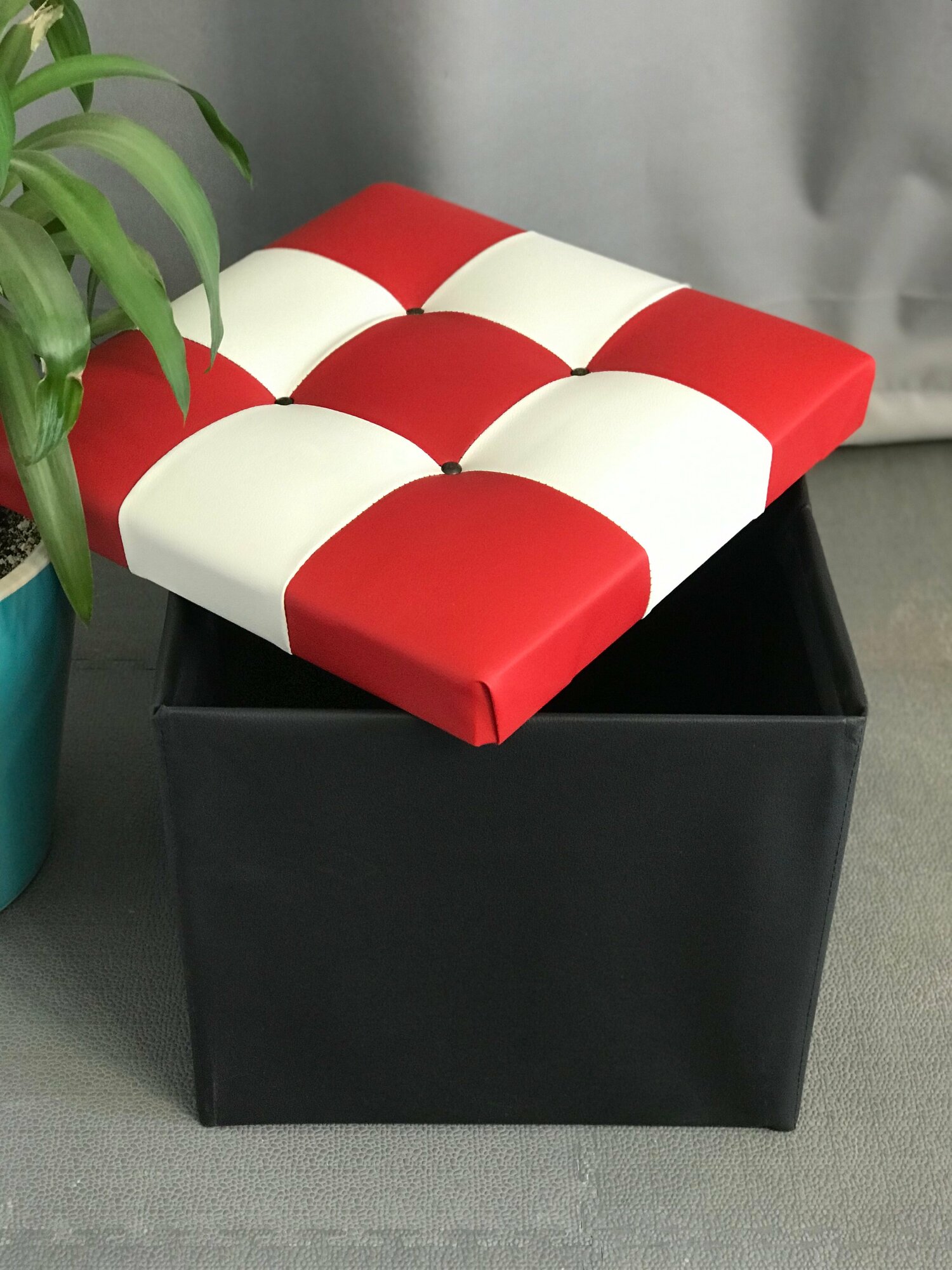 Пуф складной с ящиком для хранения "Шахматы" черно-белый