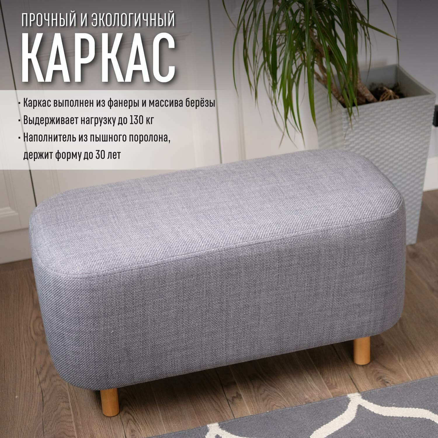 Банкетка в прихожую Happy Hands home, 80 см, светло-серая на ножках, ткань рогожка, в спальню, в детскую комнату, на кухню, в коридор, прикроватная, деревянная, длинная, прямоугольная, мягкая, пуф для ног, для туалетного столика.