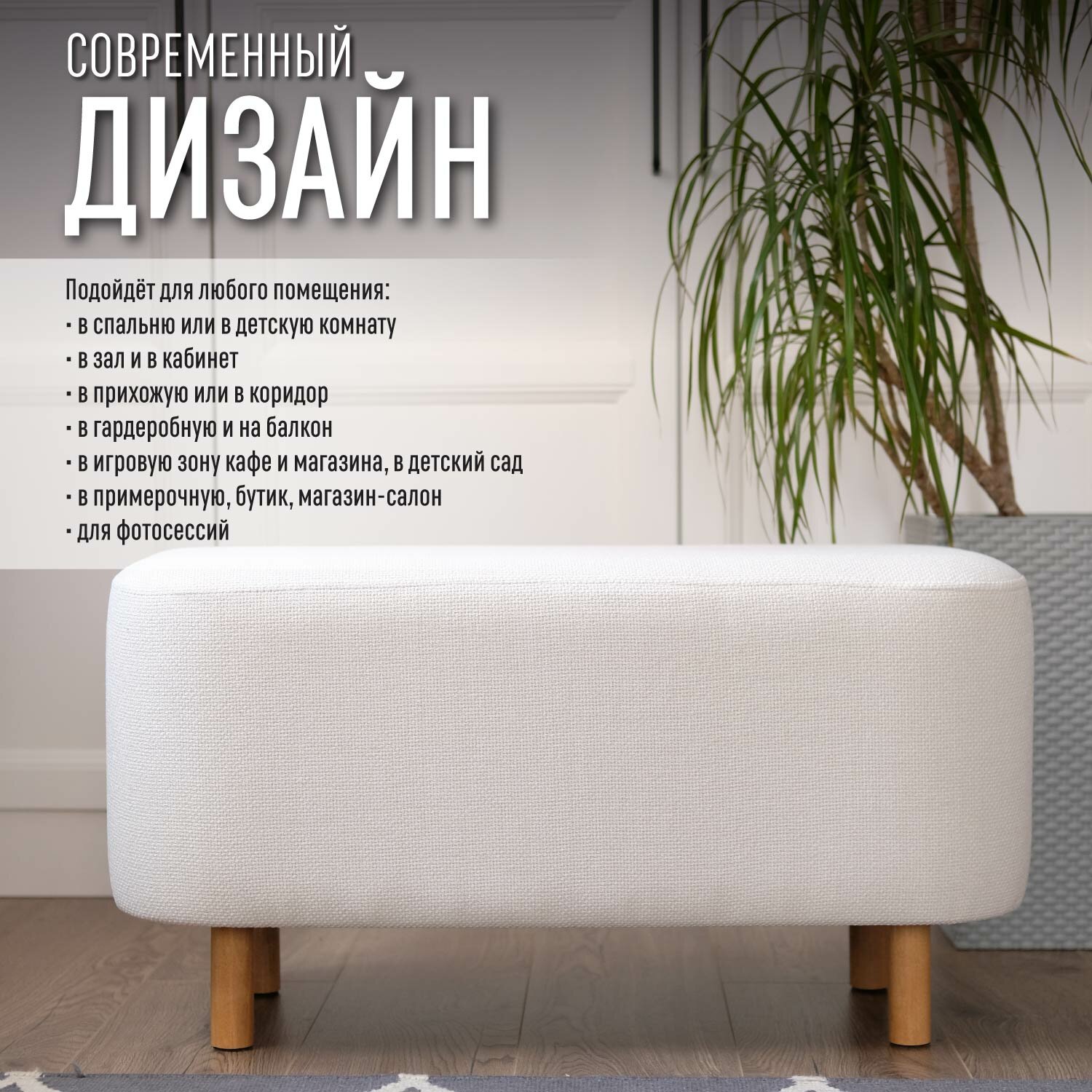 Купить Банкетка в прихожую Happy Hands home, 80 см, белая на ножках, ткань рогожка, в спальню, в детскую комнату, на кухню, в коридор, прикроватная, деревянная, длинная, прямоугольная, мягкая, пуф для ног, для туалетного столика.