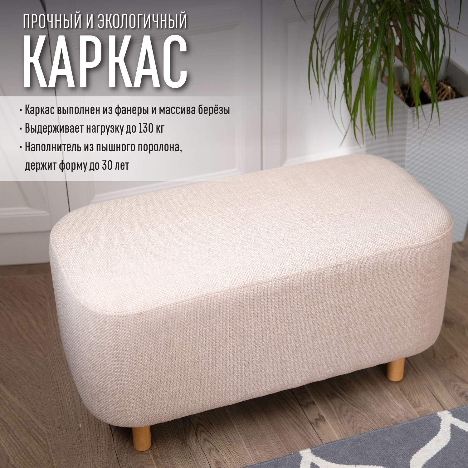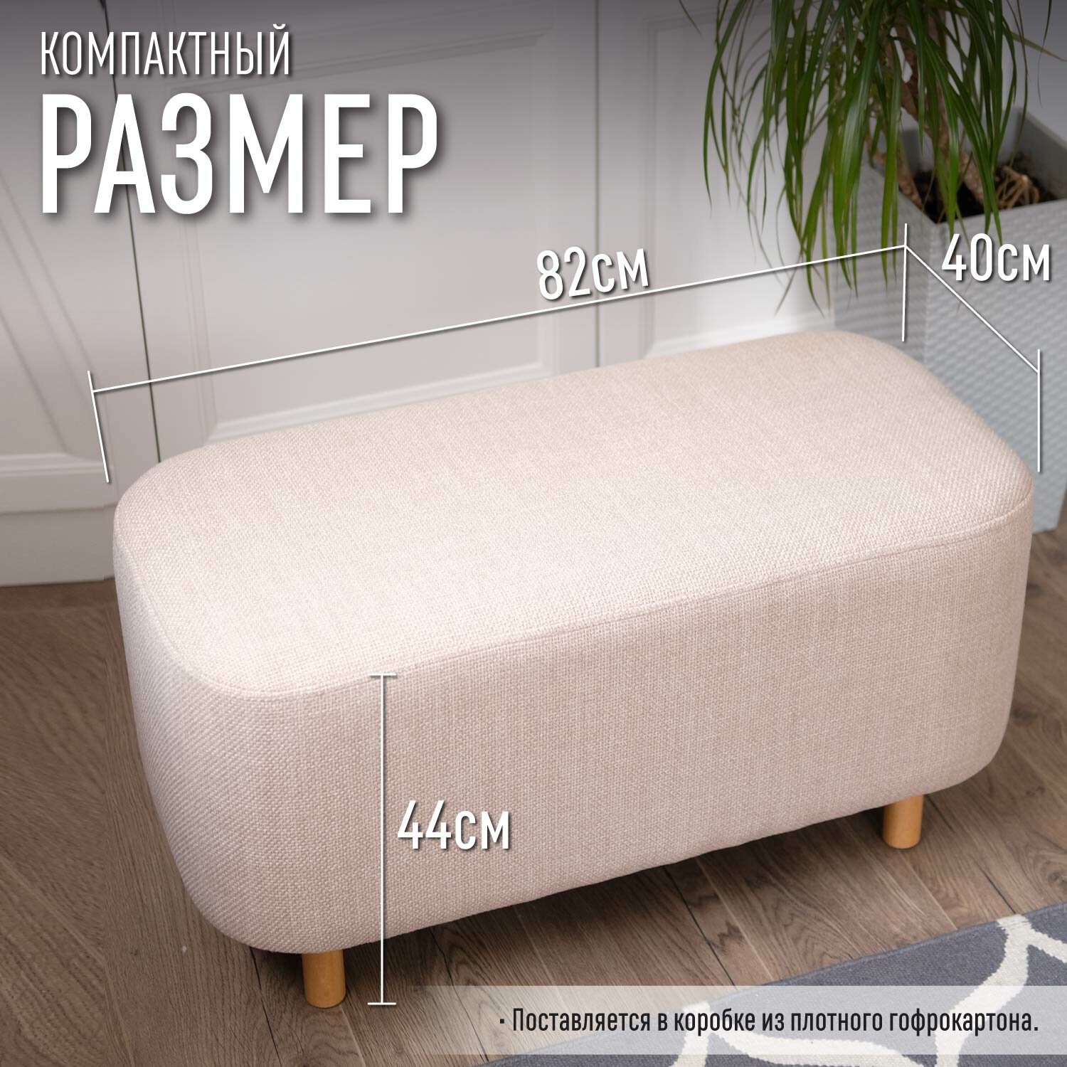 СохранитьБанкетка в прихожую Happy Hands home, 80 см, бежевая на ножках, ткань рогожка, в спальню, в детскую комнату, на кухню, в коридор, прикроватная, деревянная, длинная, прямоугольная, мягкая, пуф для ног, для туалетного столика. интересное: