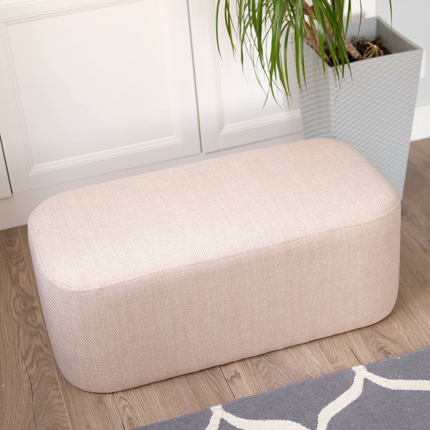 Банкетка в прихожую Happy Hands home, 80 см, белая на ножках, ткань рогожка, в спальню, в детскую комнату, на кухню, в коридор, прикроватная, деревянная, длинная, прямоугольная, мягкая, пуф для ног, для туалетного столика.