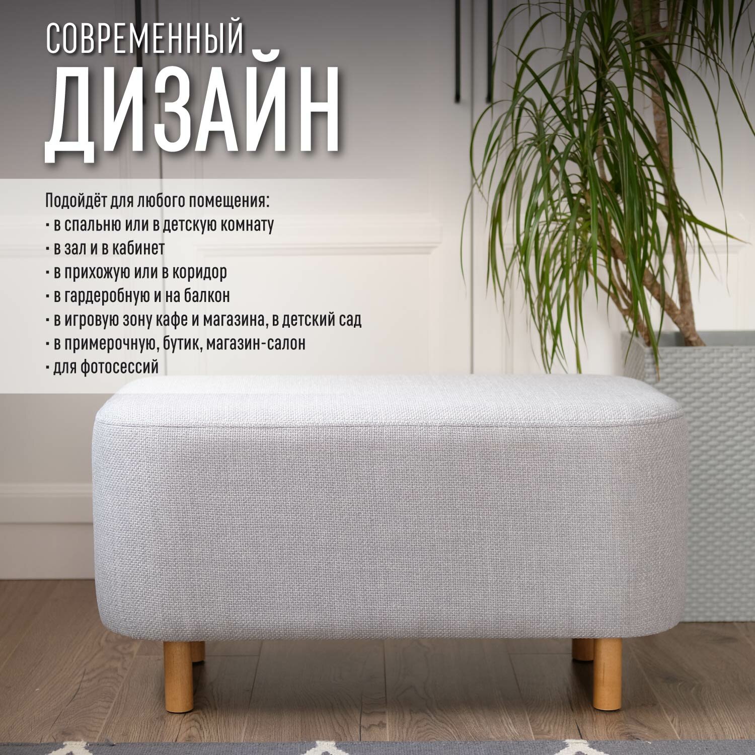 СохранитьБанкетка в прихожую Happy Hands home, 80 см, светло-серая на ножках, ткань рогожка, в спальню, в детскую комнату, на кухню, в коридор, прикроватная, деревянная, длинная, прямоугольная, мягкая, пуф для ног, для туалетного столика. интересное: