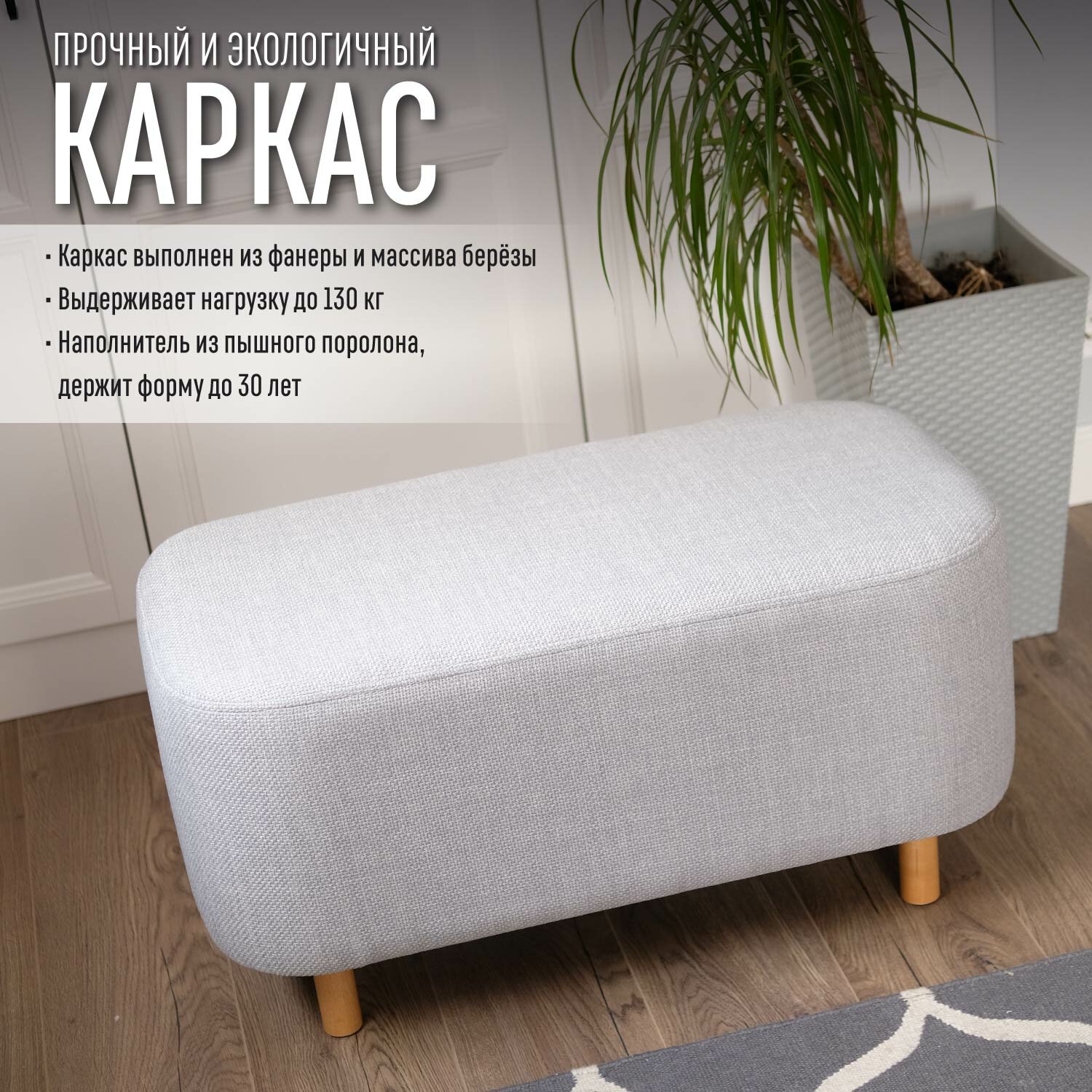 Купить Банкетка в прихожую Happy Hands home, 80 см, светло-серая на ножках, ткань рогожка, в спальню, в детскую комнату, на кухню, в коридор, прикроватная, деревянная, длинная, прямоугольная, мягкая, пуф для ног, для туалетного столика.