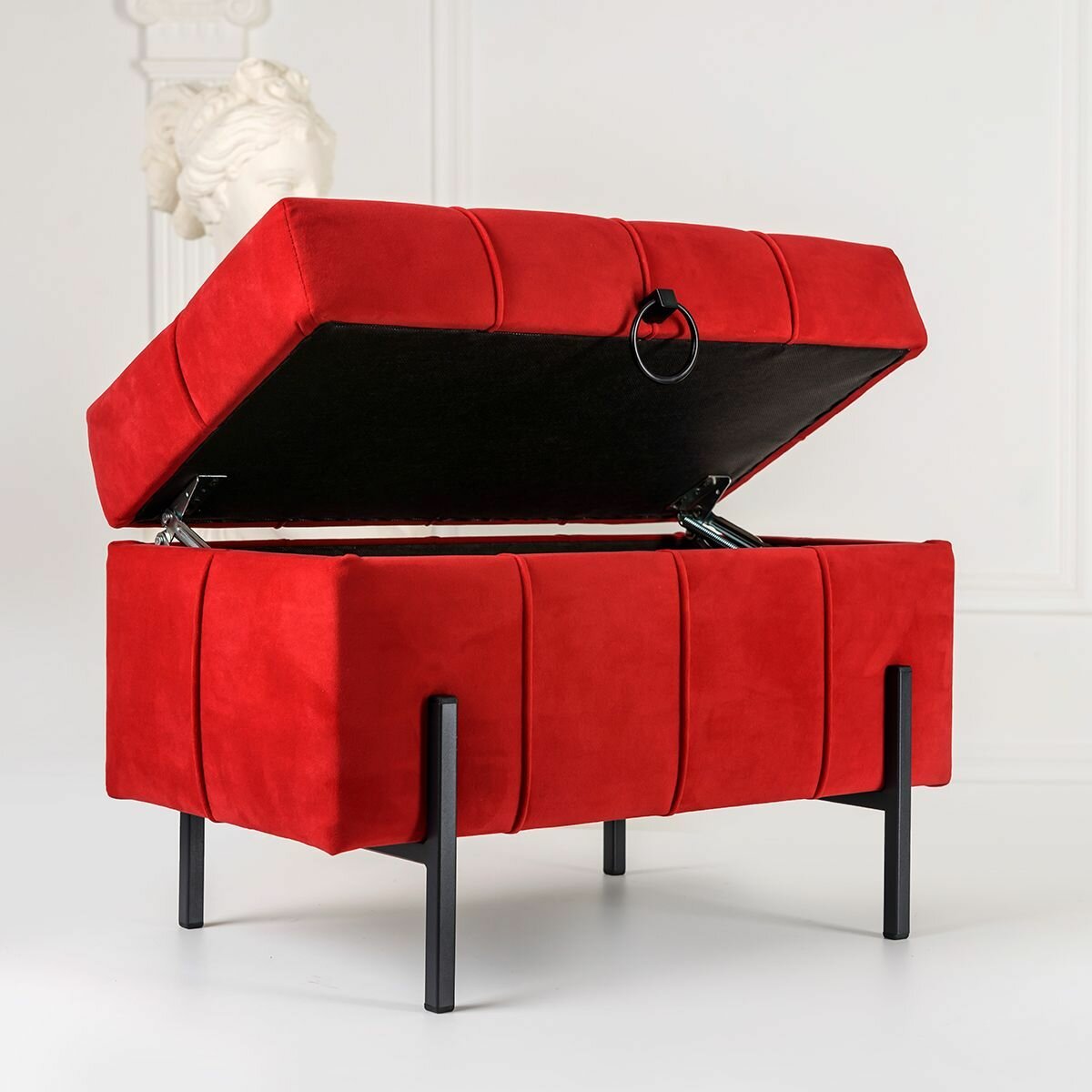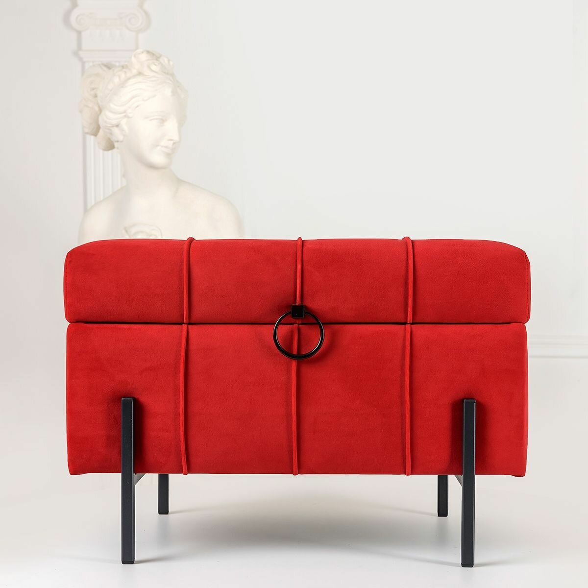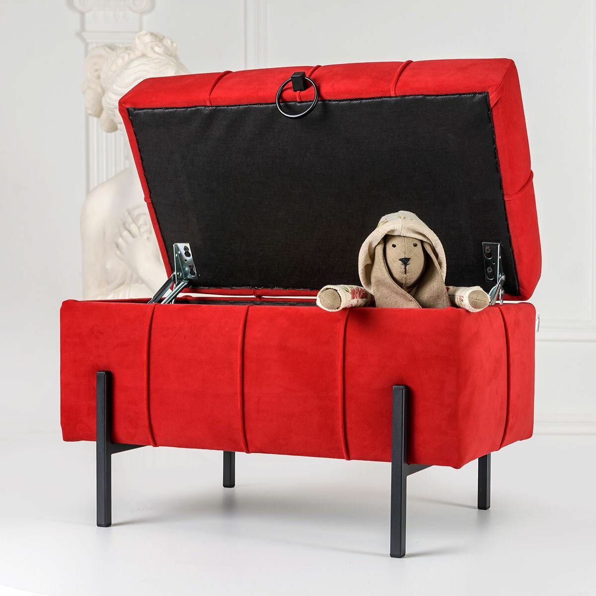 Купить Пуфик SAMOYLOV MEBEL с ящиком для хранения серый велюр Банкетка сундук. Пуф в прихожую, спальню, гостиную. Красный