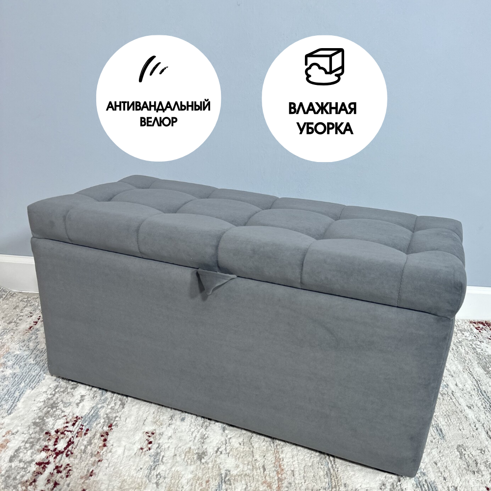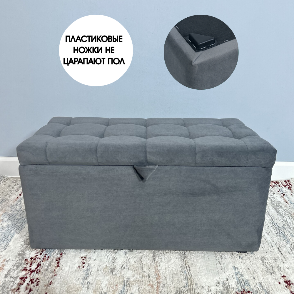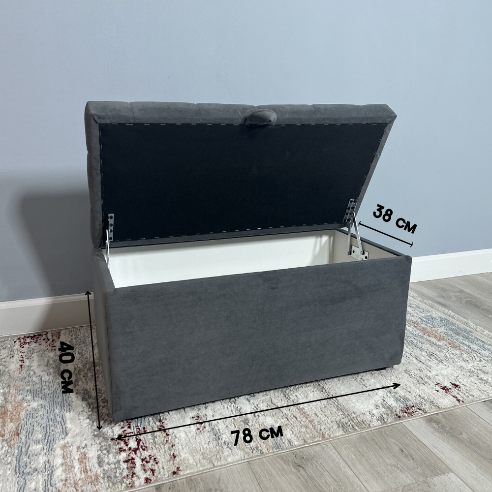 Пуфик в прихожую спальню с ящиком для хранения, 78х40х38, графит