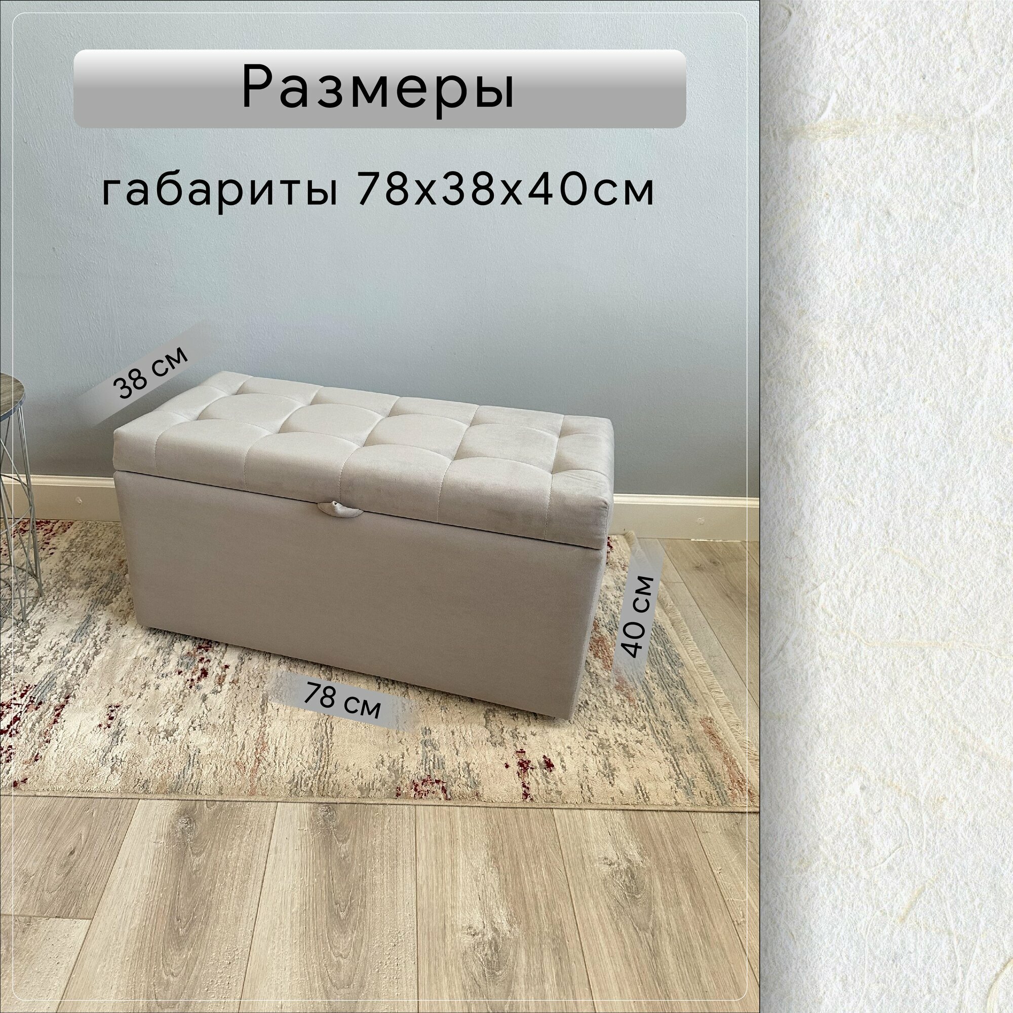 Пуфик в прихожую спальню с ящиком для хранения, 78х40х38, темно-бежевый