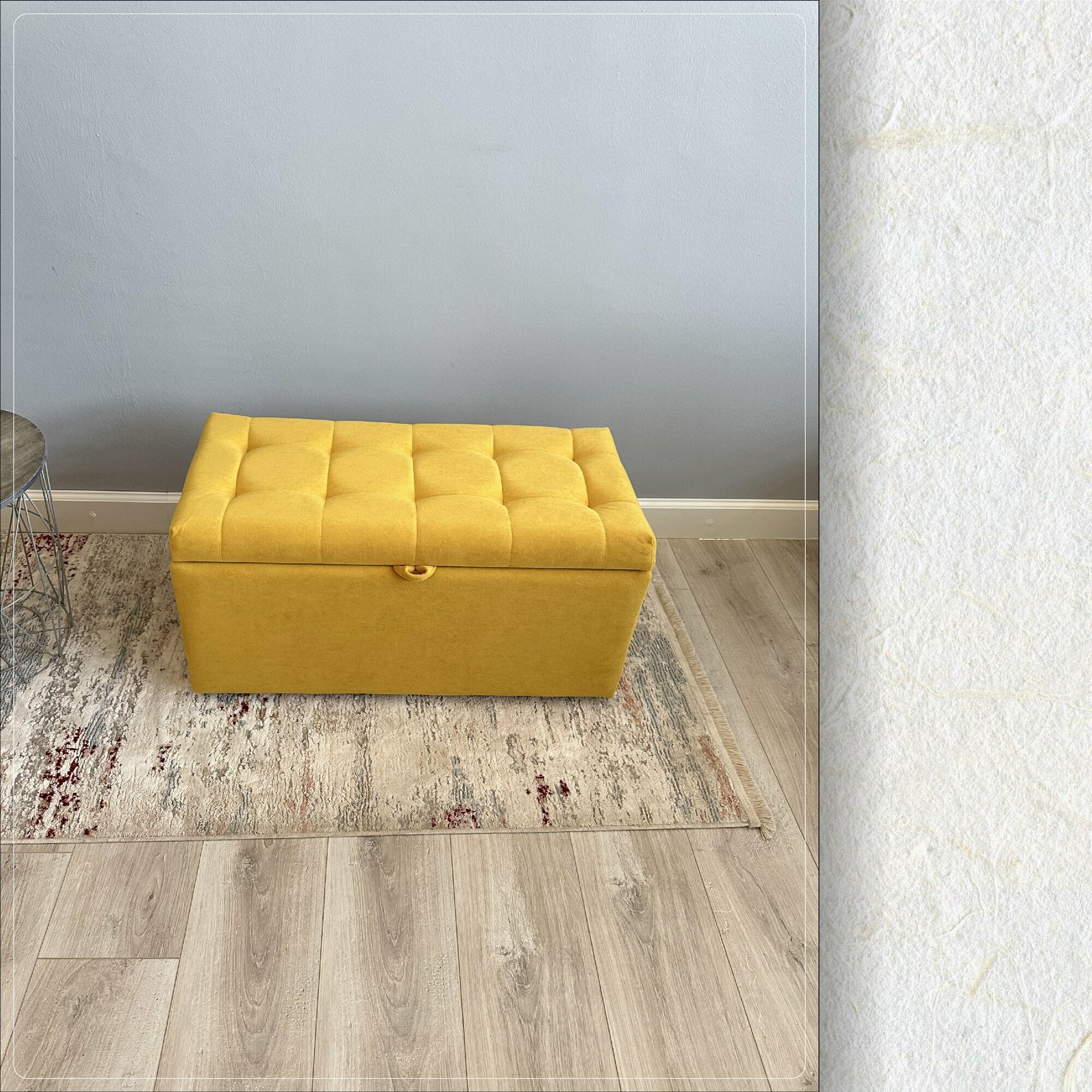 Купить Пуфик в прихожую спальню с ящиком для хранения, 78х40х38, горчичный