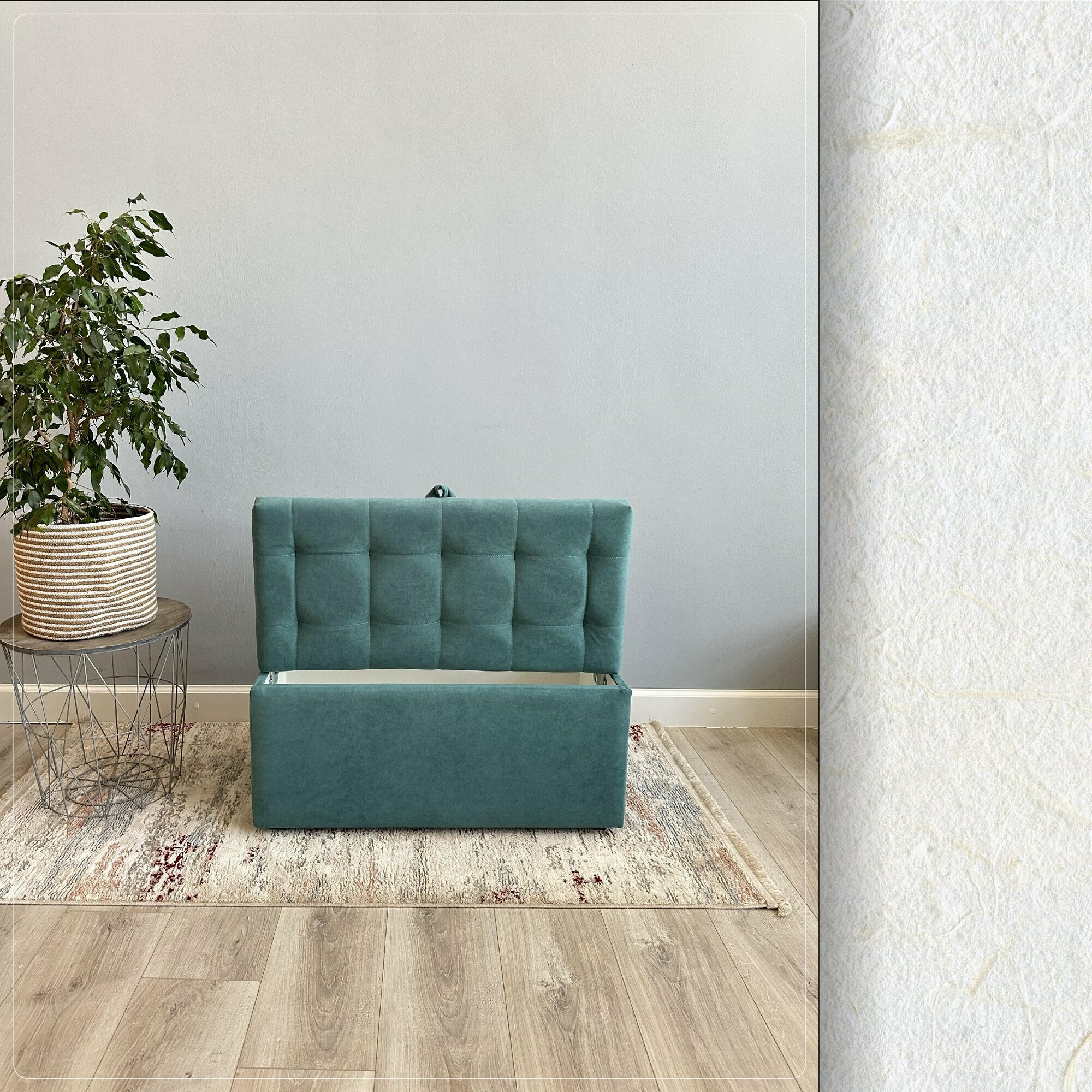 Купить Пуфик в прихожую спальню с ящиком для хранения, 78х40х38, бирюзовый