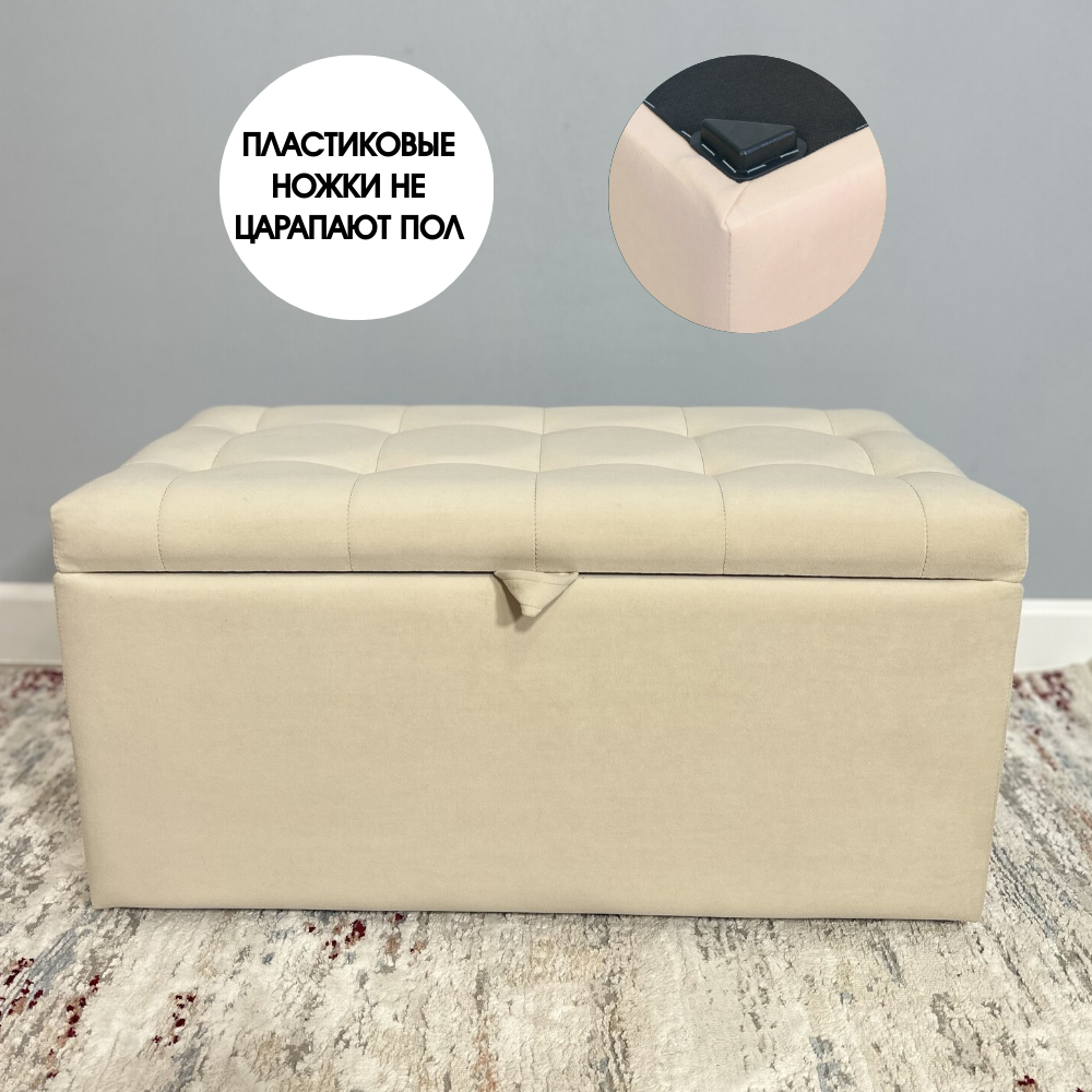 Пуфик в прихожую спальню с ящиком для хранения, 78х40х38, темно-бежевый
