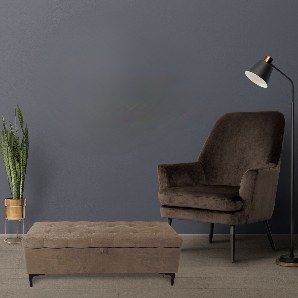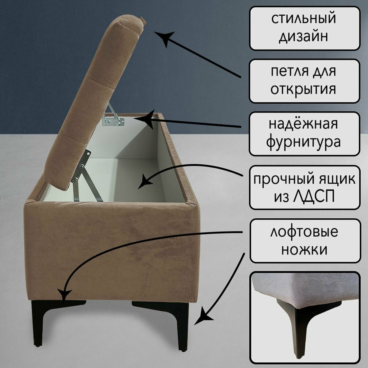 Пуфик банкетка "Лонг" с ящиком для хранения/ Велюр/Коричневый/ 120x40x43 (см)