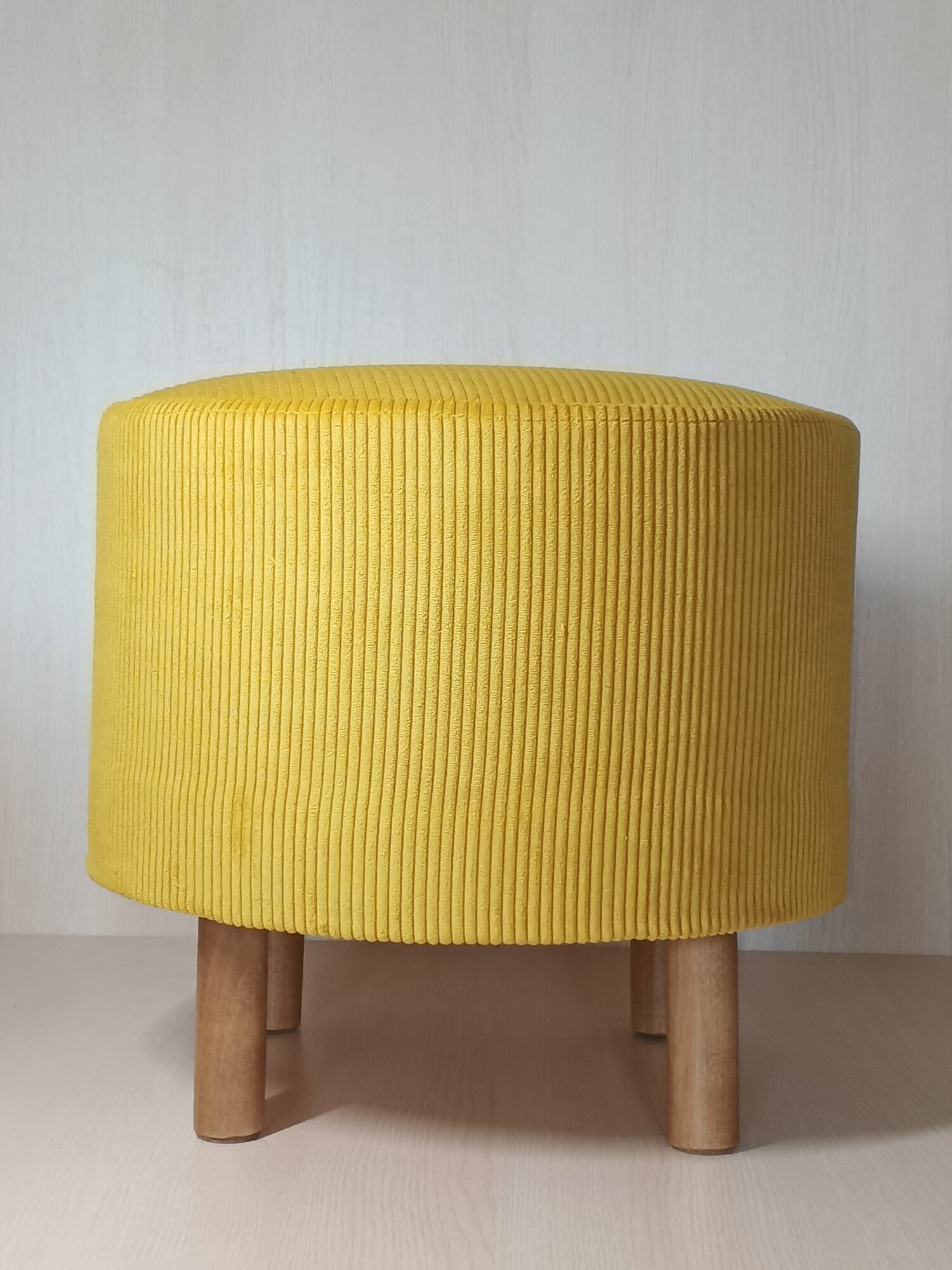 Купить Пуфик, пуф Круглый, в прихожую, вельвет жëлтый ( горчичный ) на деревянных ножках с подпятниками