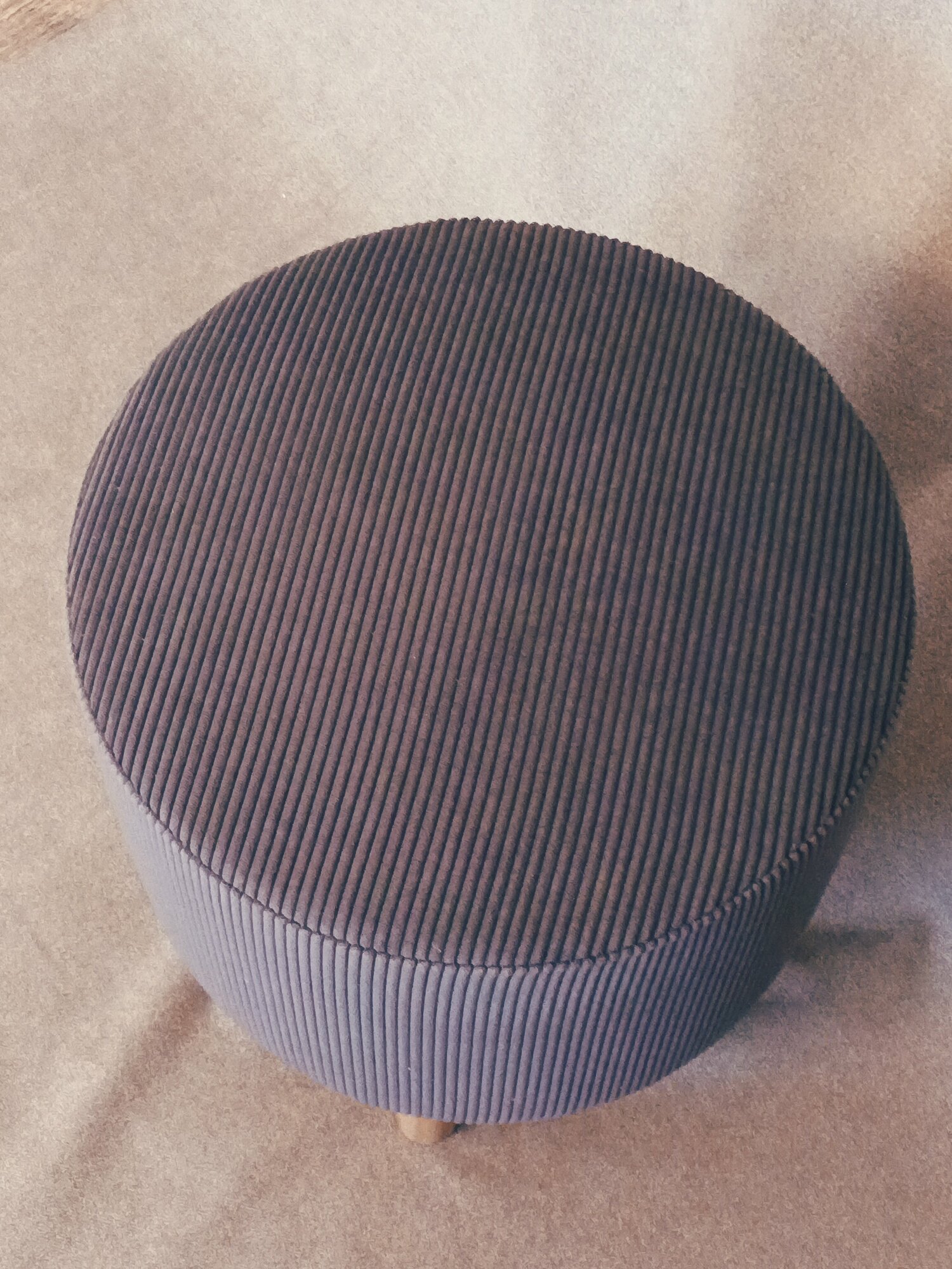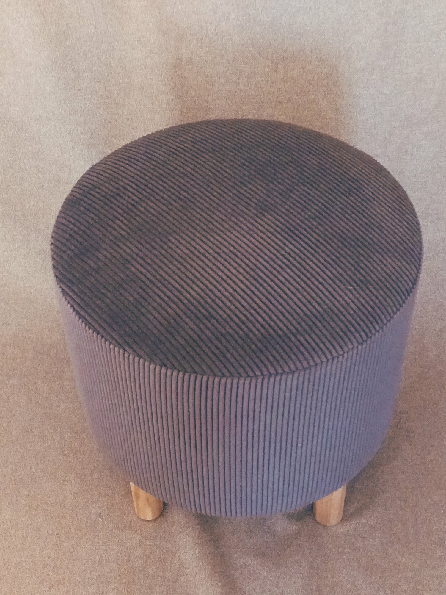 Пуфик, Пуф Круглый, в прихожую, вельвет верх-темно-серый цвет, низ- св. серый цвет, на деревянных ножках с войлочными подпятниками.