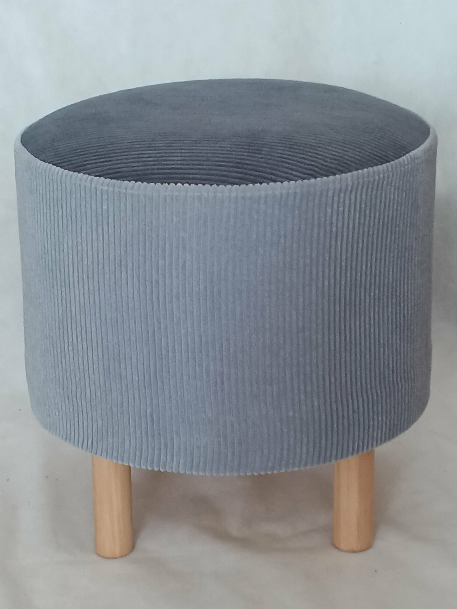 Пуфик, Пуф Круглый, в прихожую, вельвет светло серый цвет на деревянных ножках с войлочными подпятниками.
