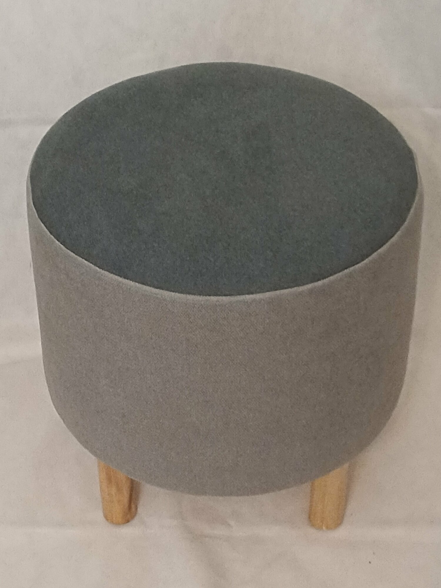 Пуфик, Пуф Круглый, в прихожую, вельвет верх-темно-серый цвет, низ- св. серый цвет, на деревянных ножках с войлочными подпятниками.