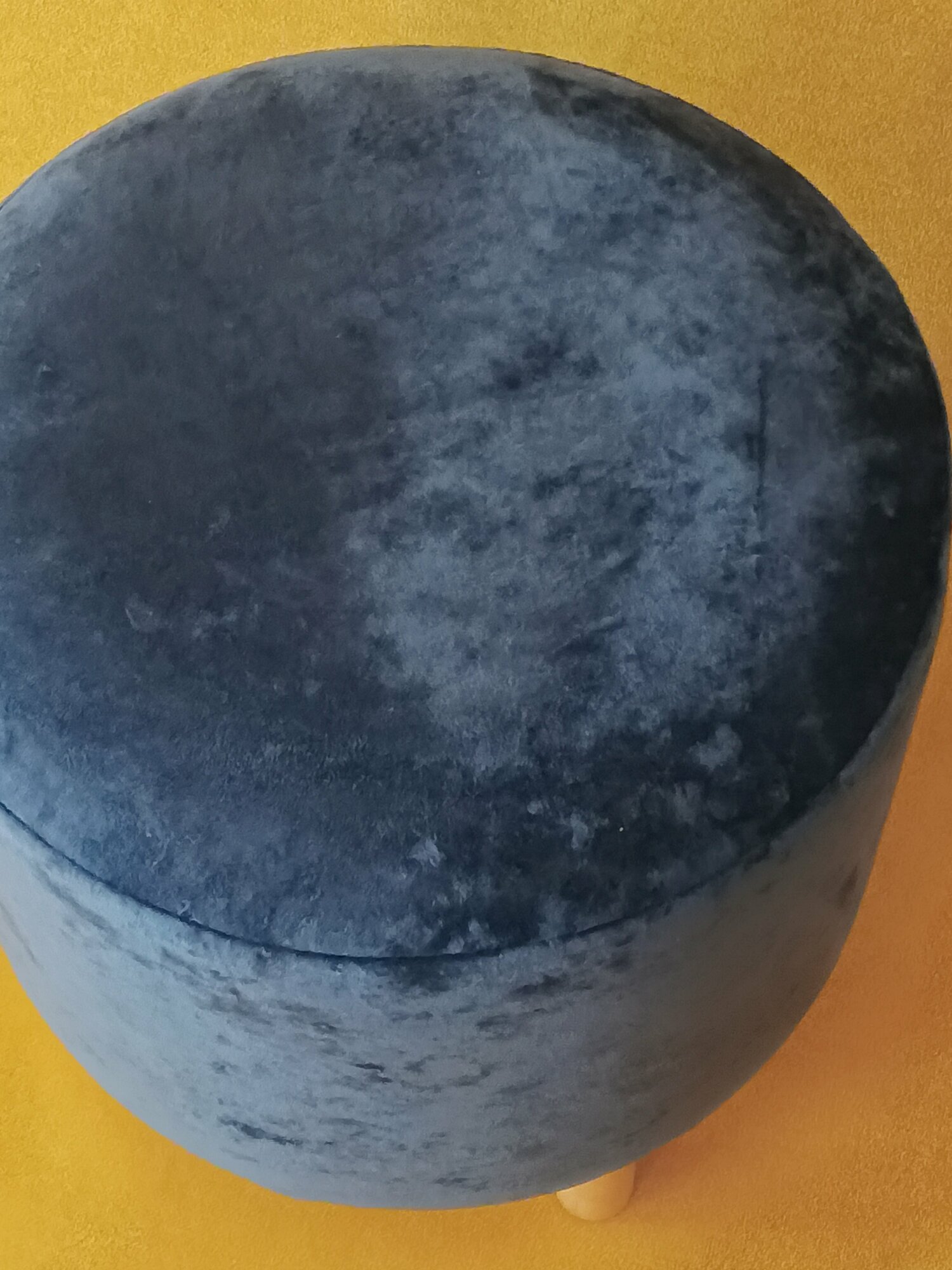 СохранитьПуфик, Пуф Круглый, в прихожую, бархат тёмно-синий (индиго) цвет на деревянных ножках с войлочными подпятниками. интересное: