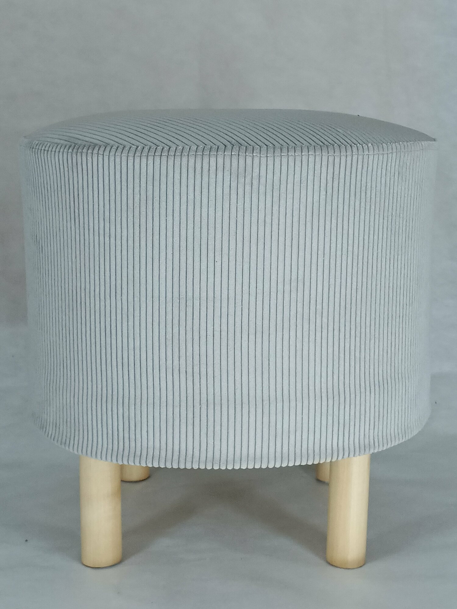 Пуфик, Пуф Круглый, в прихожую, вельвет светло серый цвет на деревянных ножках с войлочными подпятниками.