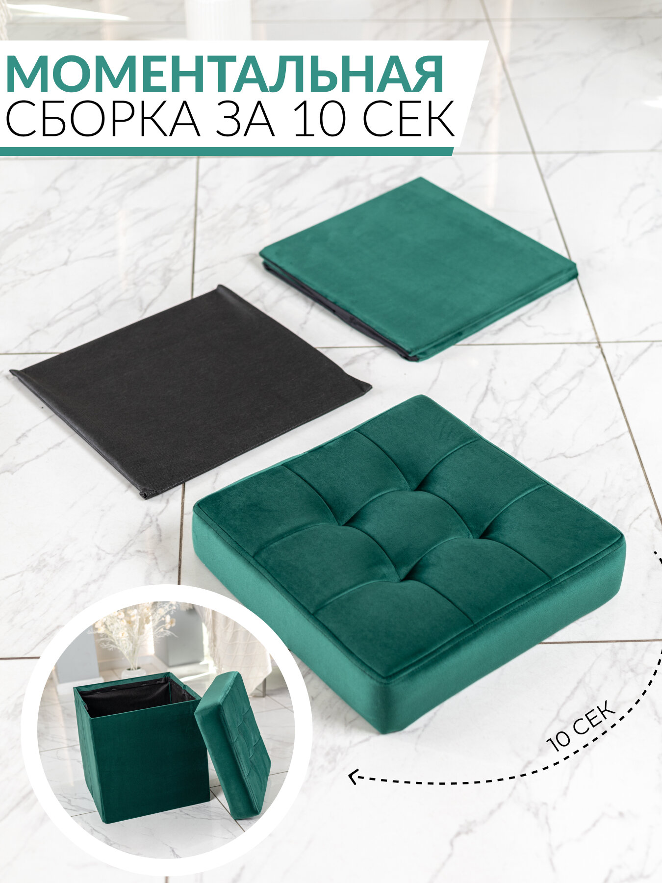 СохранитьПуф изумрудный складной с крышкой и ящиком для хранения интересное: