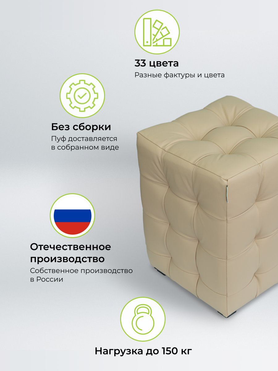Пуфик BONMEBEL, Модерн-2 МИНИ, Сфинкс Крем, экокожа, 30х30х40 см, пуфик