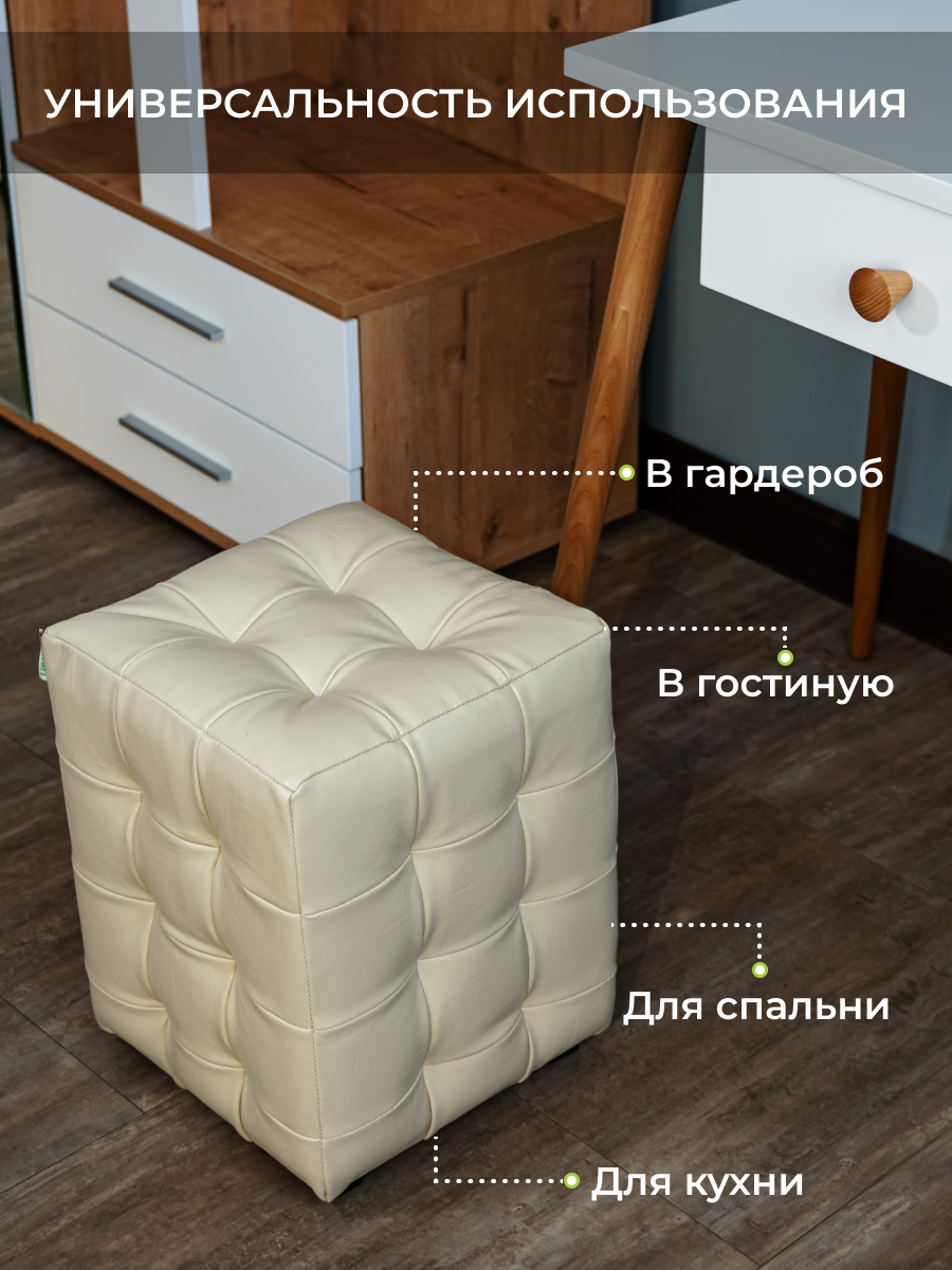 Пуфик BONMEBEL, Модерн-2 МИНИ, Сфинкс Крем, экокожа, 30х30х40 см, пуфик