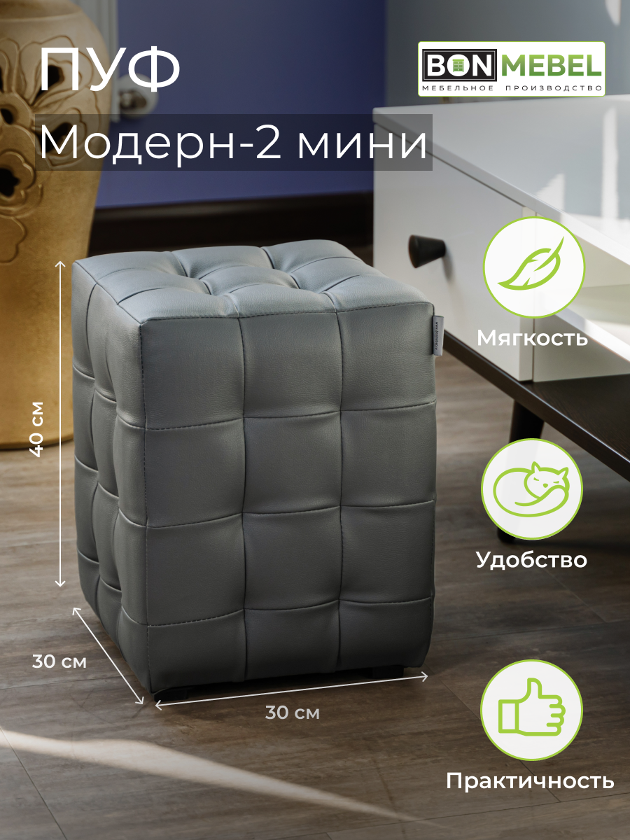 Пуфик БонМебель Модерн-2 мини, Маэстро Серый, экокожа, 30х30х40 см, пуфик
