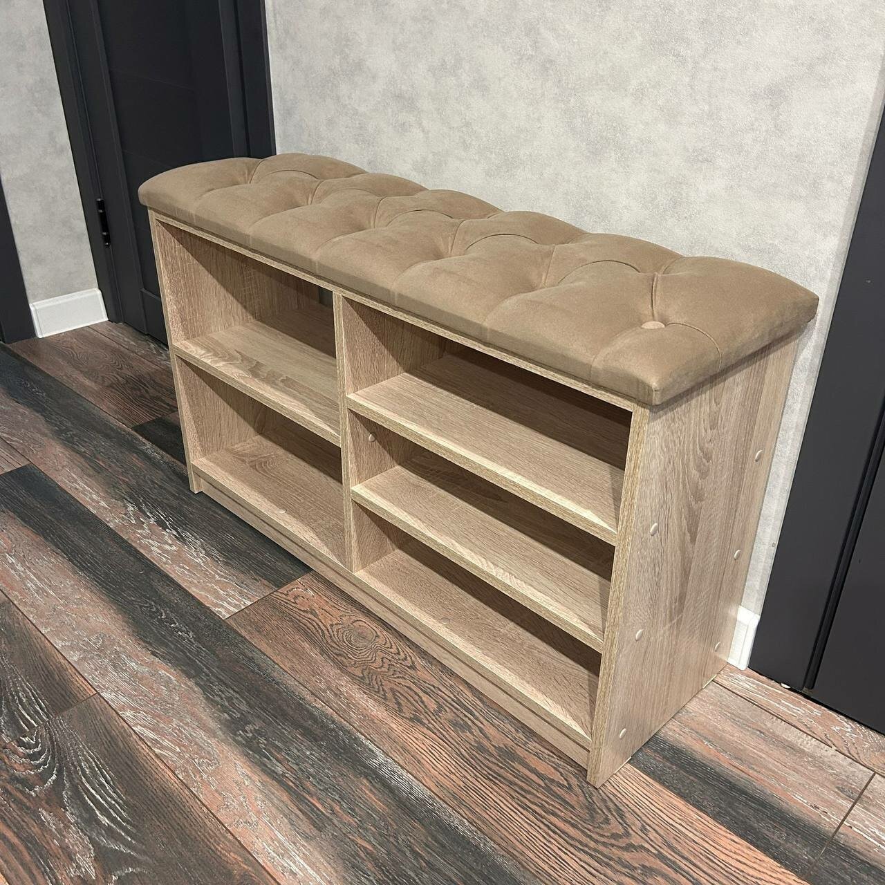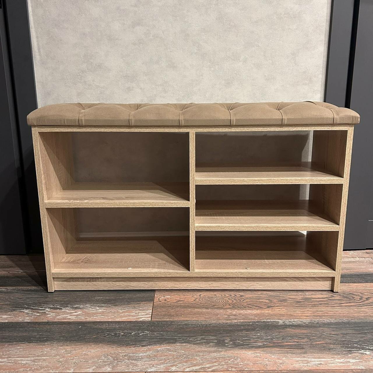 Обувница для прихожей с сиденьем закрытая / Пуф мягкий из экокожи / Банкетка в прихожую Бежевый 59.5*38.5*38