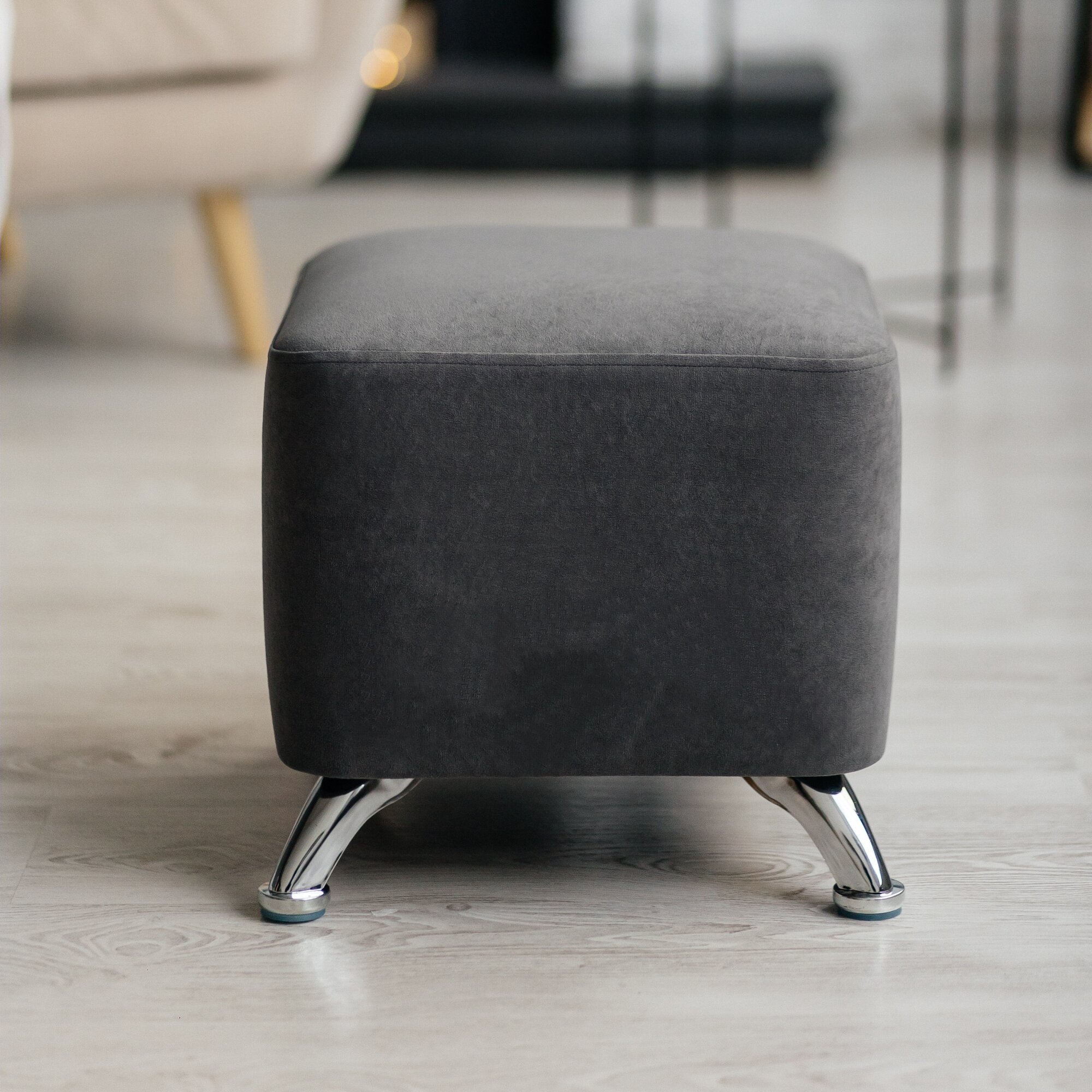 Купить Пуф Парадис-Хром, серый, квадратный, на Хромированных ножках из фанеры и массива