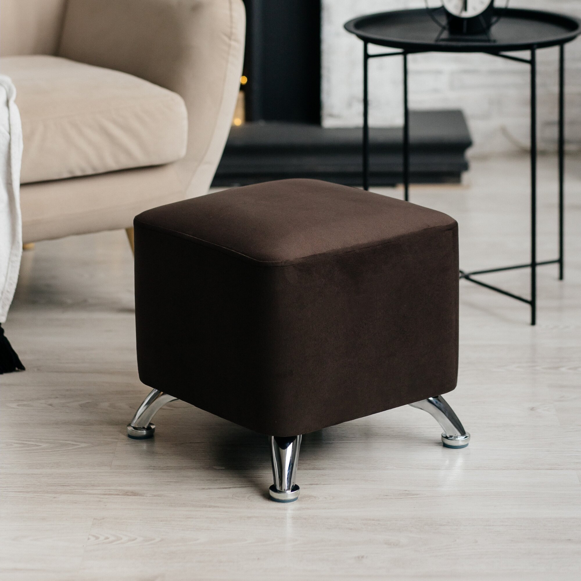Купить Пуф Парадис-Хром, коричневый, квадратный, на Хромированных ножках из фанеры и массива.