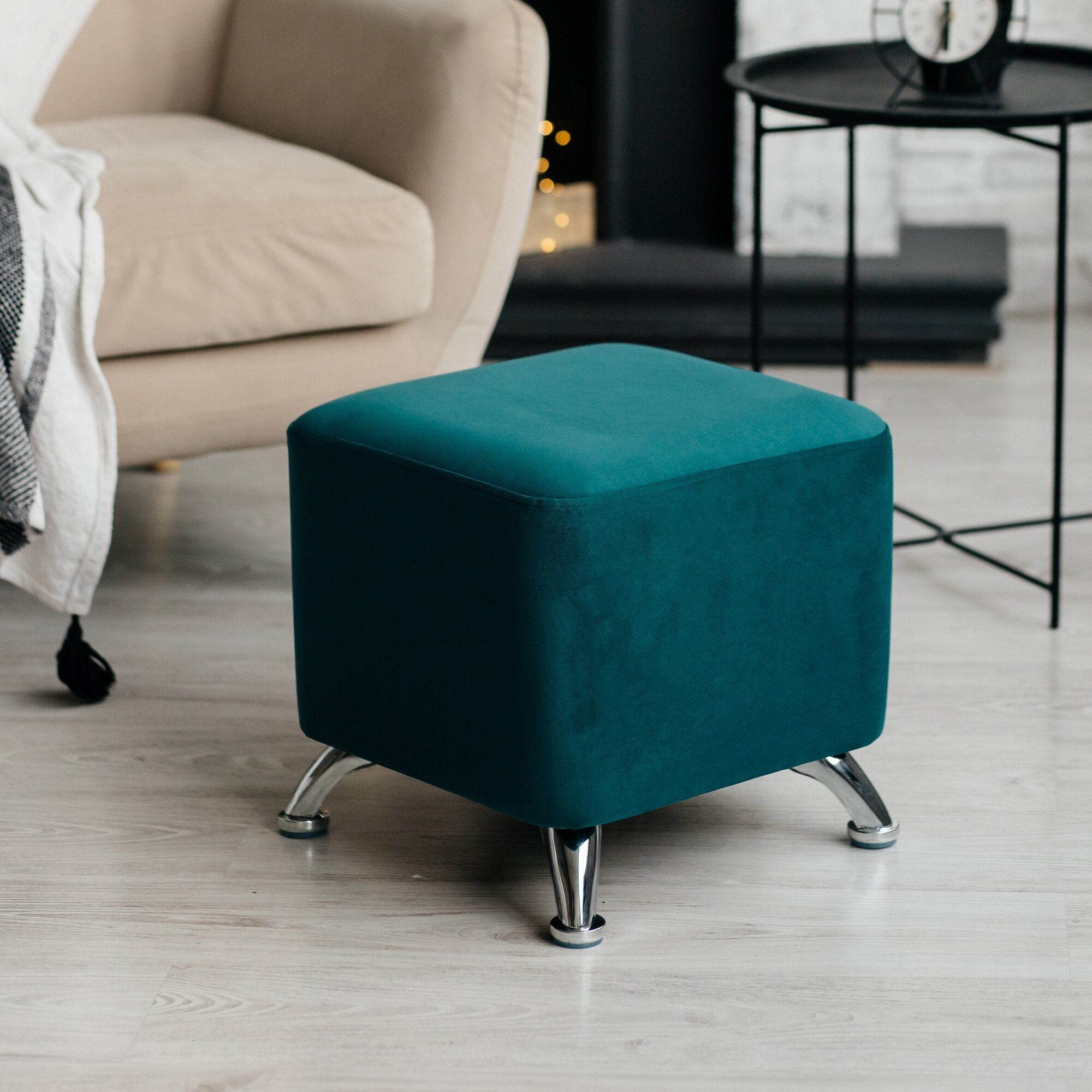 Купить Пуф Парадис-Хром, зеленый, квадратный, на Хромированных ножках из фанеры и массива.