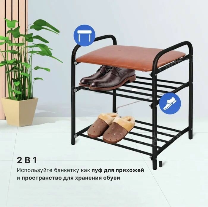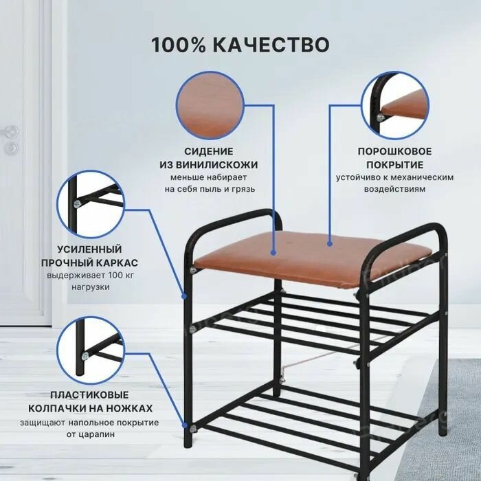 Банкетка для обуви с сиденьем Ника Б1/А(обувница для прихожей, материал: сталь, размеры:44х33х50, Cooper/Brown)