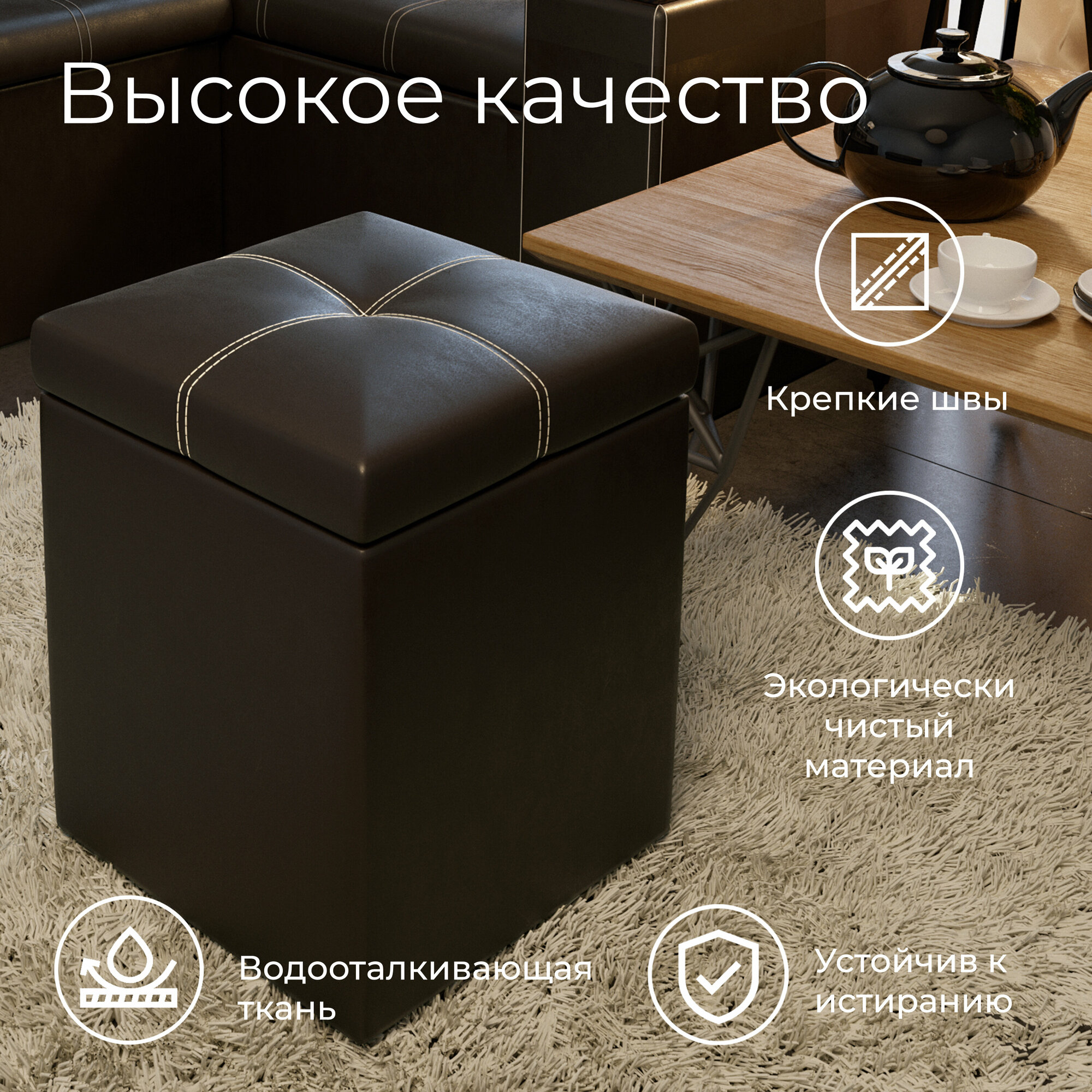 Пуф, пуфик с крышкой, квадратный коричневый Остин интересное: