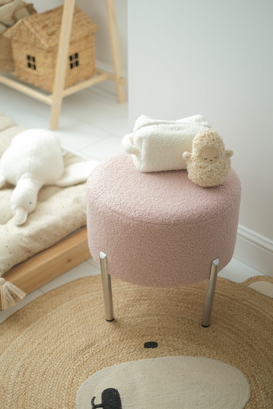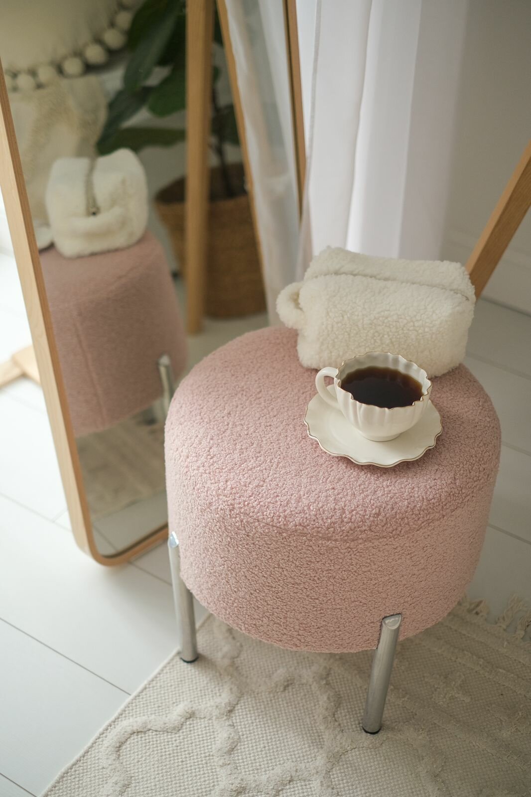 Пуфик круглый в прихожую спальню экомех розовый, ножки стальные интересное: