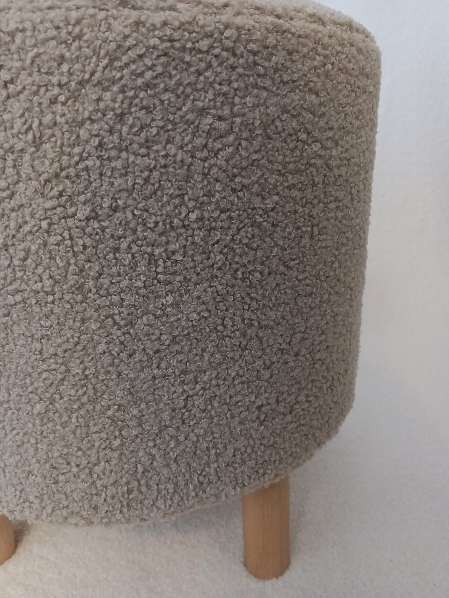 Купить Пуфик, пуф Круглый, в прихожую, мех бежевый цвет на деревянных ножках с войлочными подпятниками.