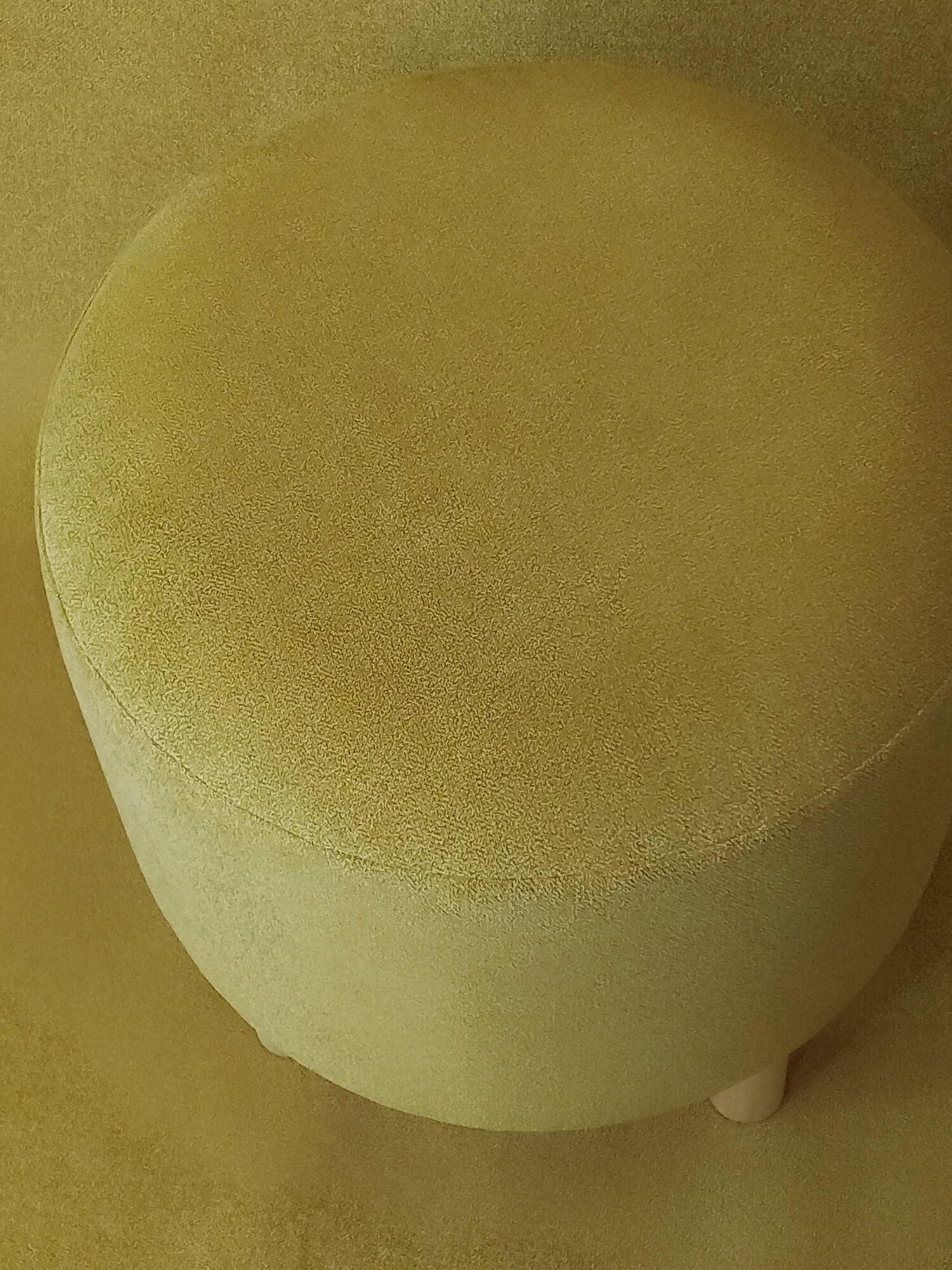 СохранитьПуфик, пуф Круглый, в прихожую, микробукле желтый (горчица) цвет на деревянных ножках с войлочными подпятниками. интересное: