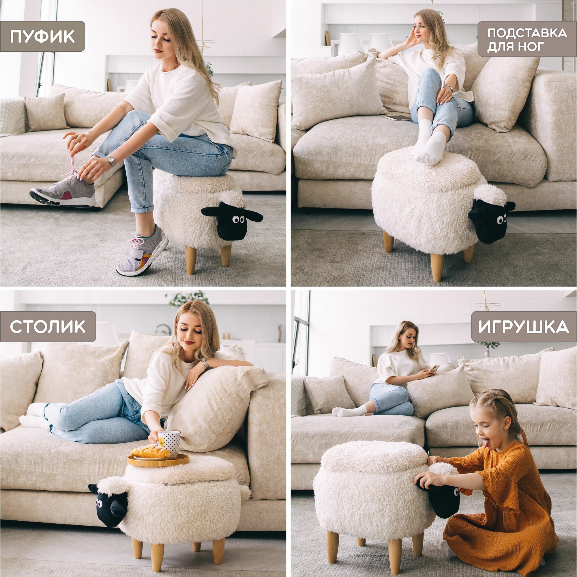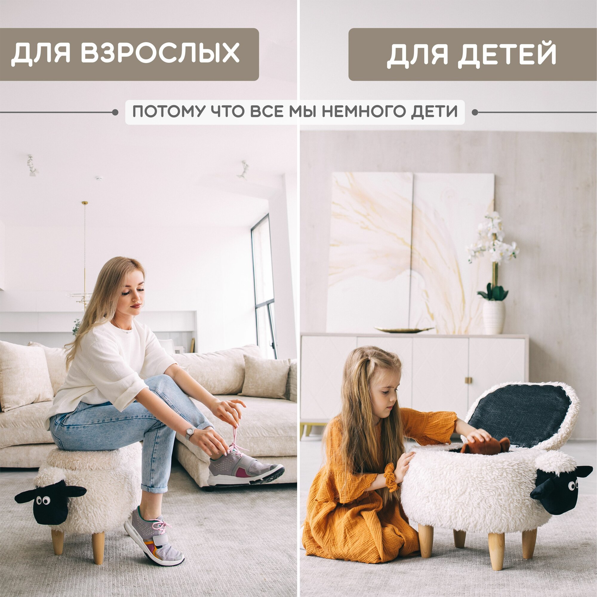 Пуфик с ящиком для хранения. Пуф-животное Черный Барашек