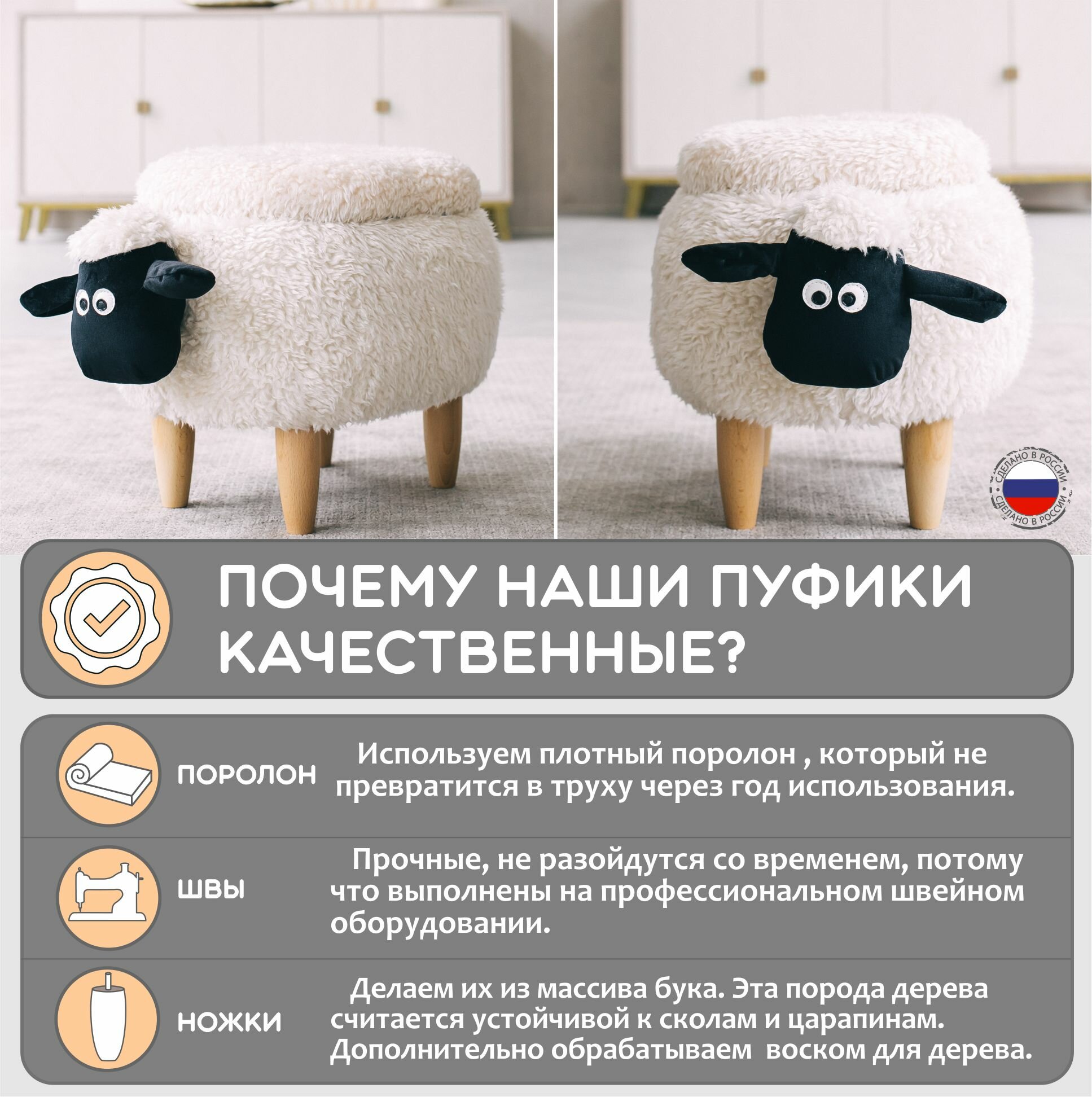 Ниже Вы можете прочитать отзывы на Пуфик-животное овечка, ознакомится с подробными характеристиками, посмотреть интересные обзоры и фотографии на Пуфик-животное овечка.