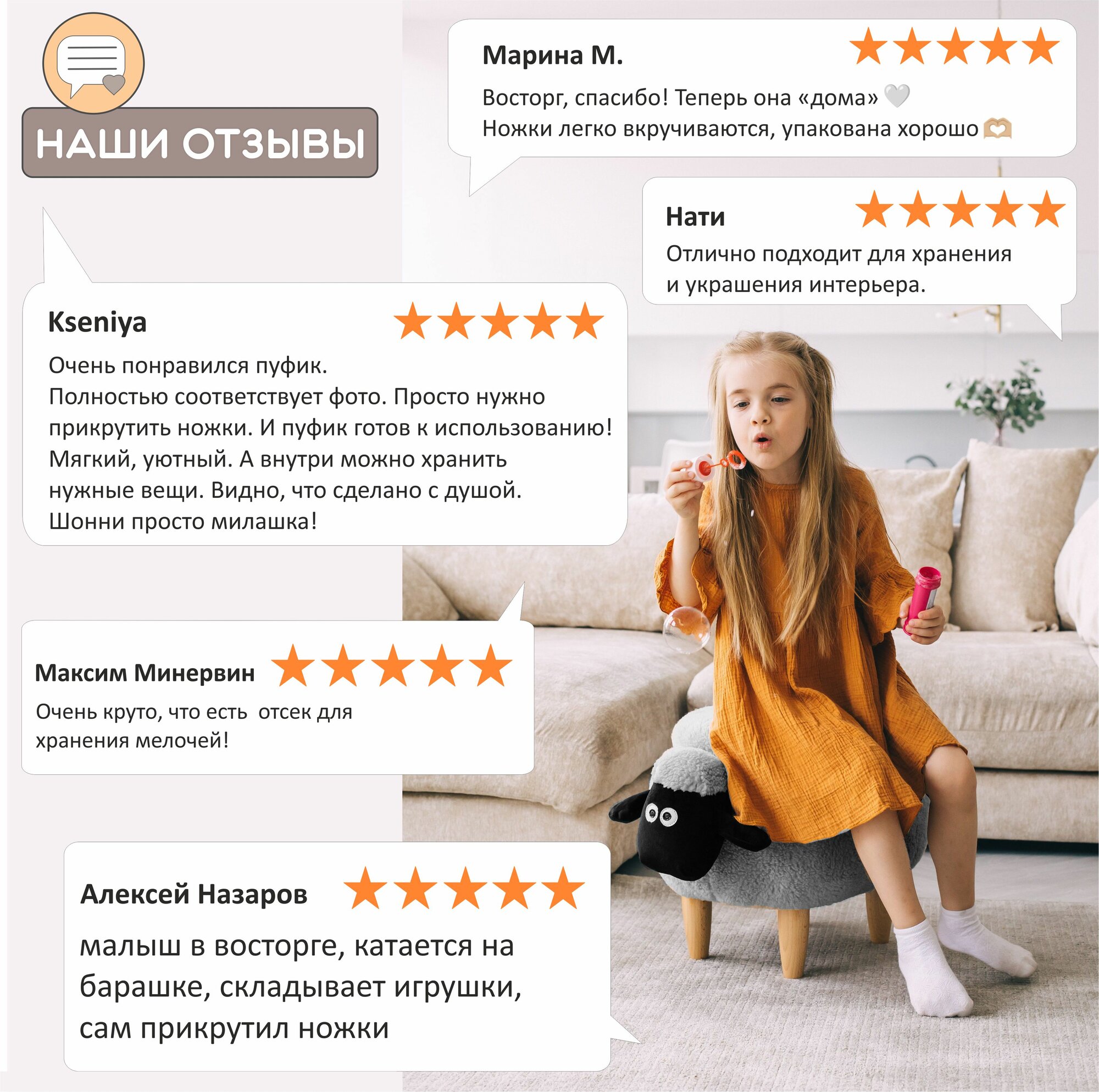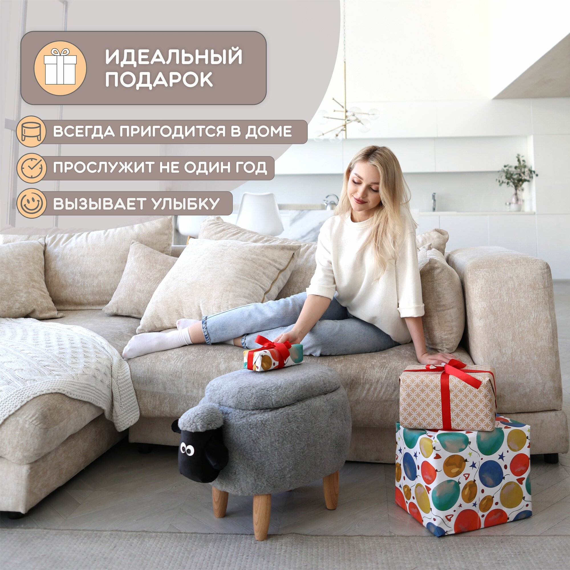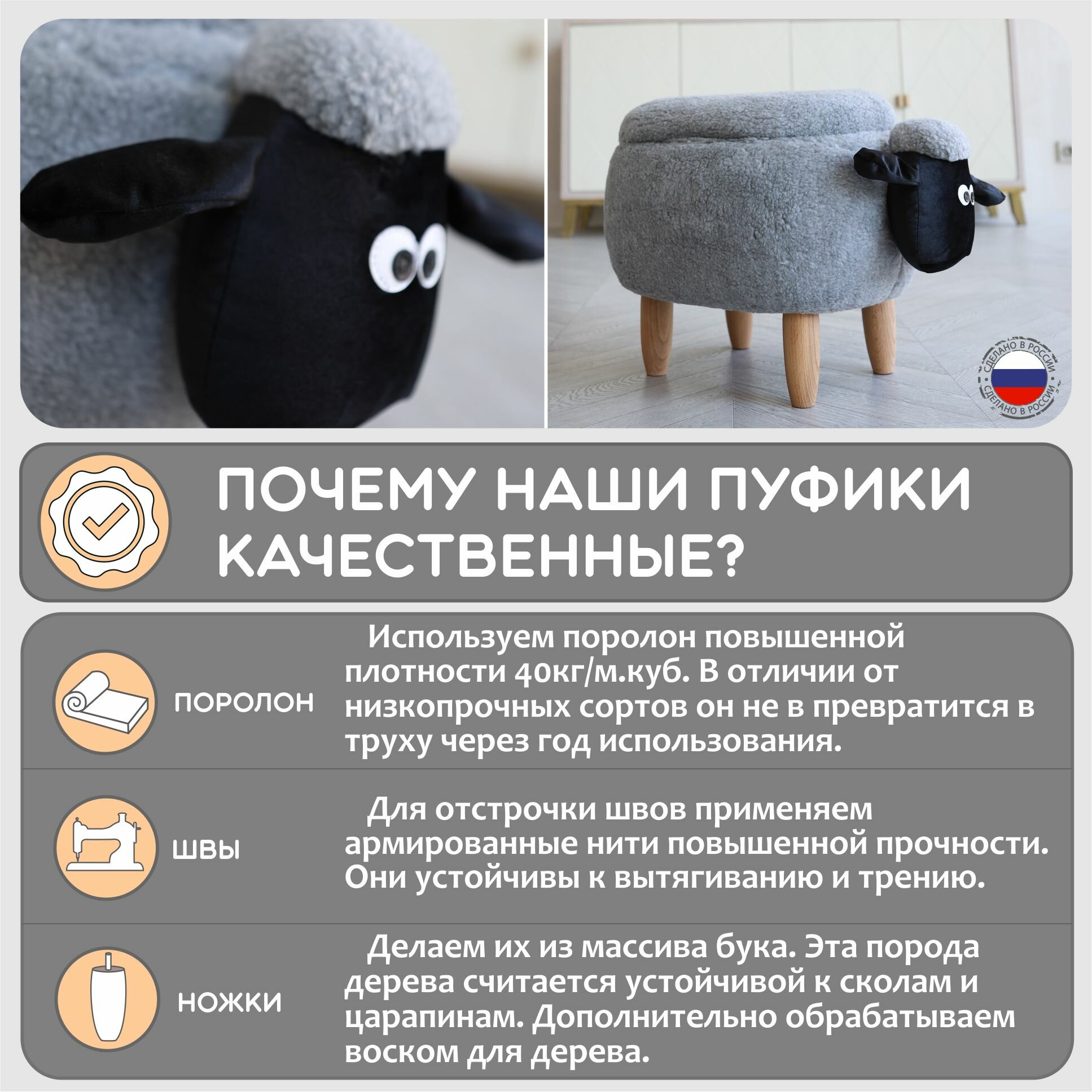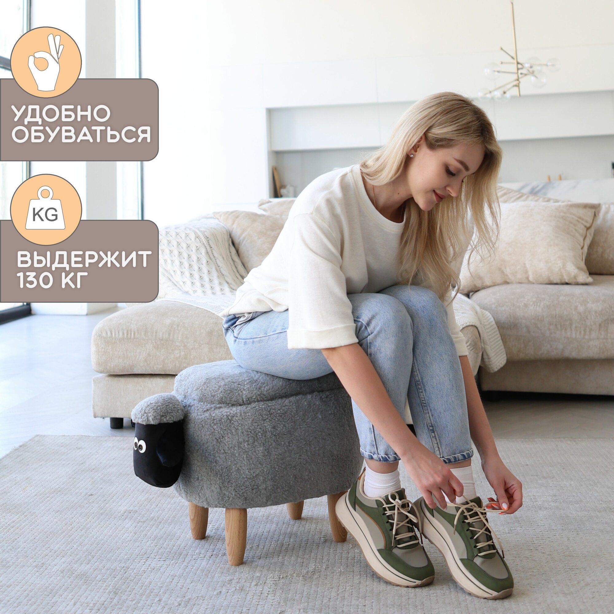 Ниже Вы можете прочитать отзывы на Пуф-животное Серая Овечка для прихожей, ознакомится с подробными характеристиками, посмотреть интересные обзоры и фотографии на Пуф-животное Серая Овечка для прихожей.