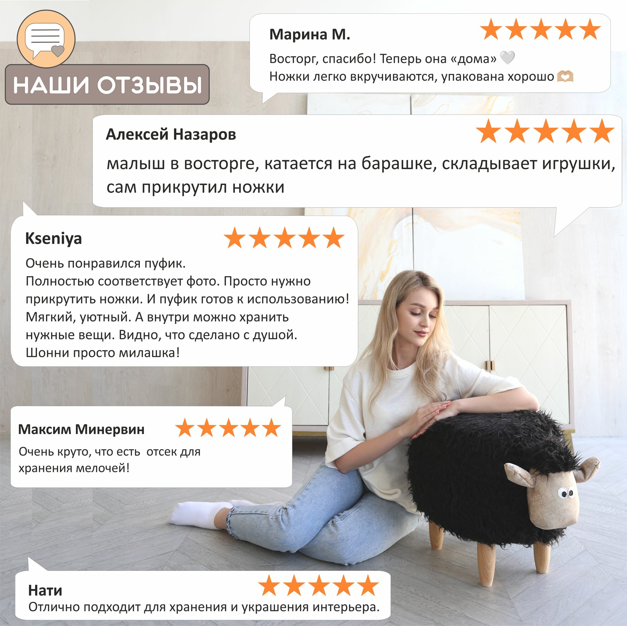 Ниже Вы можете прочитать отзывы на Пуфик с ящиком для хранения. Пуф-животное Черный Барашек, ознакомится с подробными характеристиками, посмотреть интересные обзоры и фотографии на Пуфик с ящиком для хранения. Пуф-животное Черный Барашек.