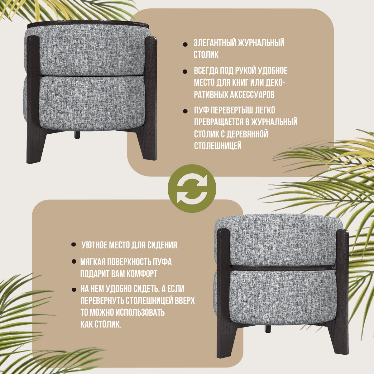Пуфик-трансформер Сальто круглый Экоткань (Серый, Венге) интересное: