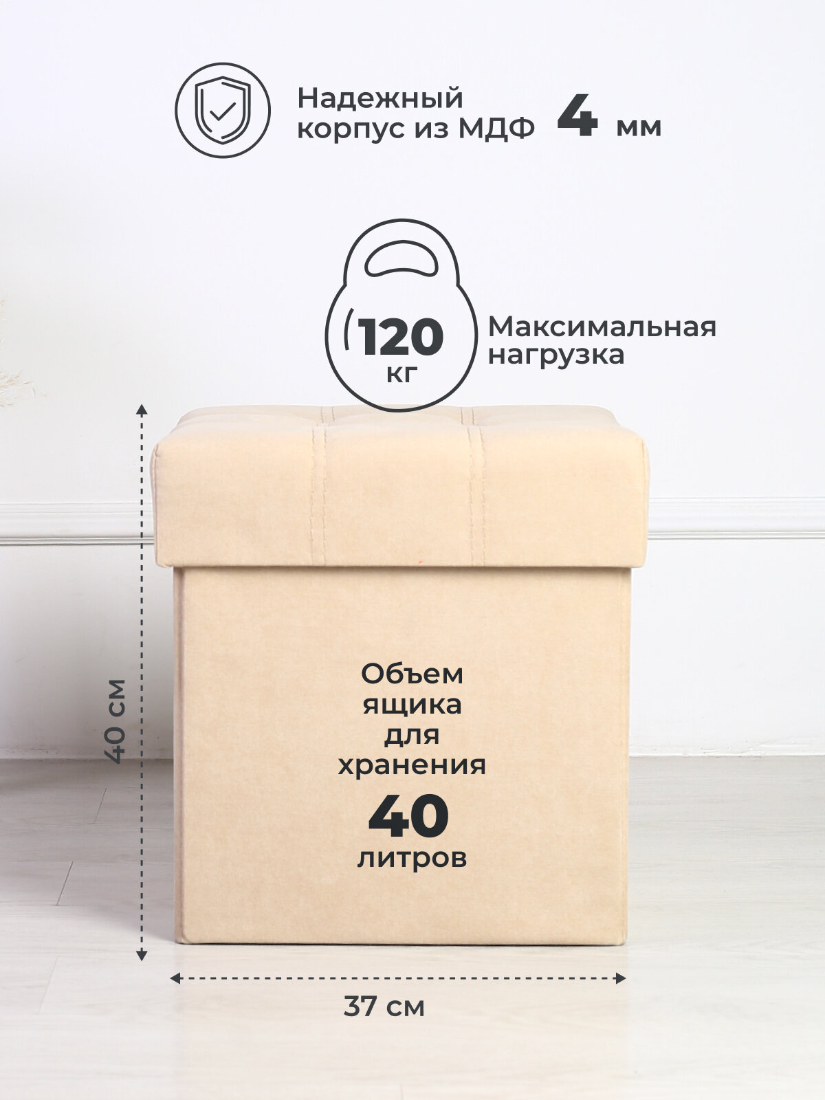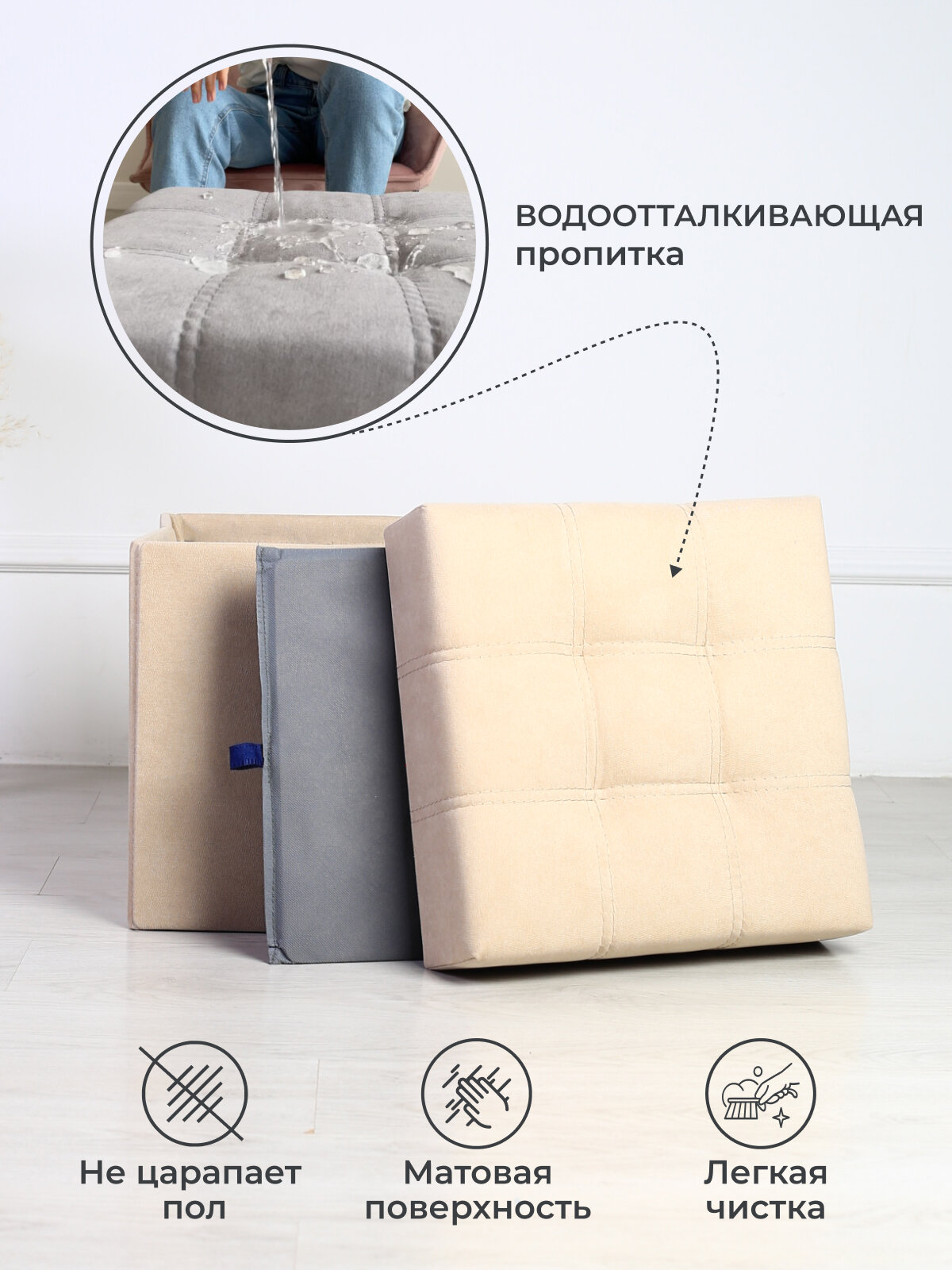 Пуфик для прихожей с ящиком для хранения от Div-one, 37*37*40 см, бежевый интересное: